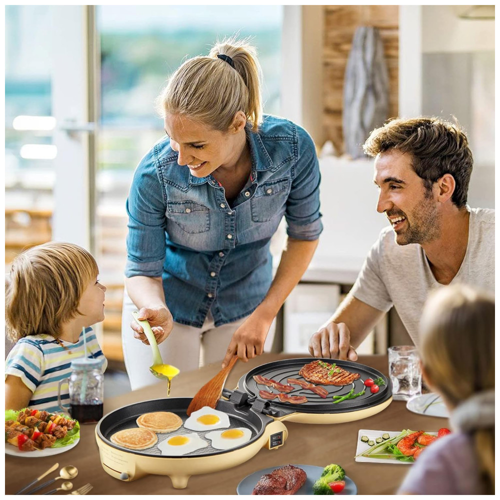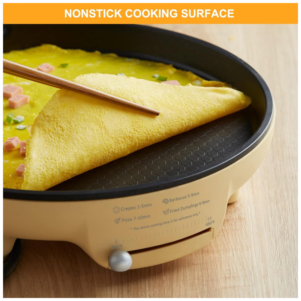 Durabilidade e eficiência A assadeira elétrica de 1500W possui um revestimento antiaderente exclusivo sem PFOA, que é 3 vezes mais durável que o revestimento antiaderente padrão e pode cozinhar 30 mais rápido. Não queima a panela nem produz fumaça. É fácil de limpar e só precisa ser limpo levemente. Tem excelente resistência e resistência a arranhões.