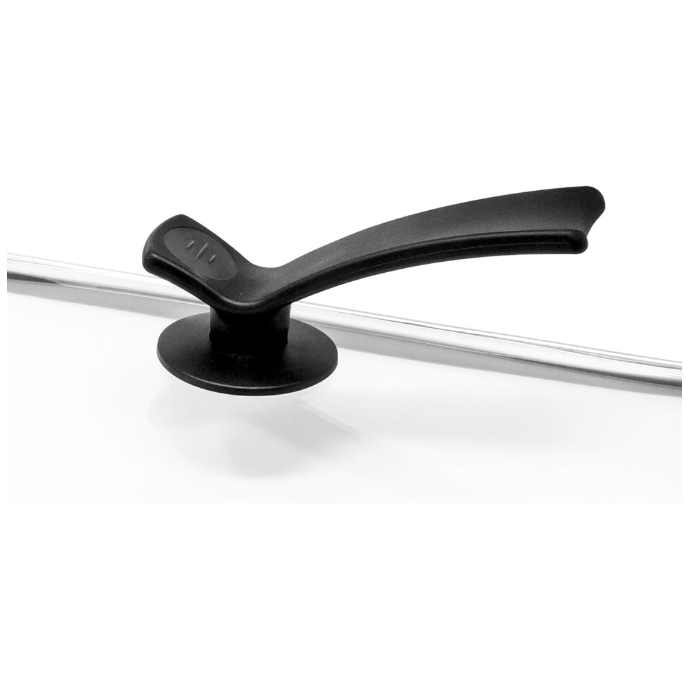 Tampa de vidro temperado com alça, especialmente projetada para ficar em cima da bancada e evitar o risco de queimaduras