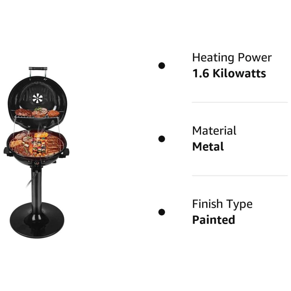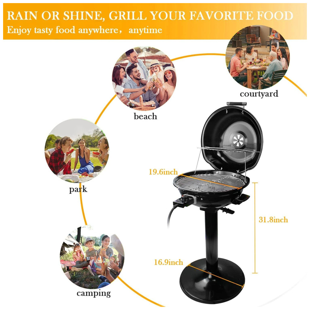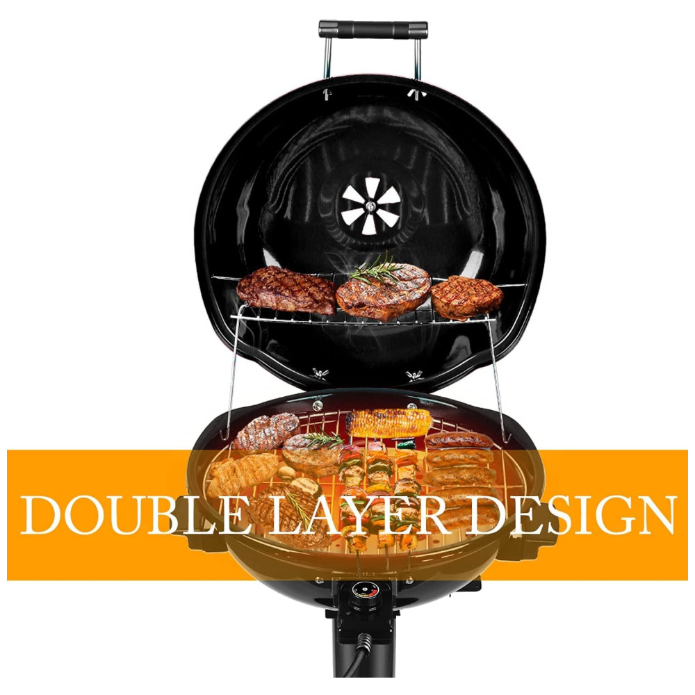 15 Porções Grelha de suporte Techwood equipada com 0.1548 m de superfície circular para grelhar, que permite fazer mais de 15 porções para festas. E o rack de aquecimento dobrável acima oferece espaço extra para manter a comida quente. Ambos os suportes para alimentos podem ser desmontados e fáceis de limpar.