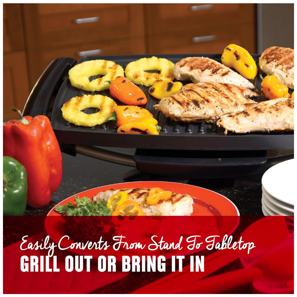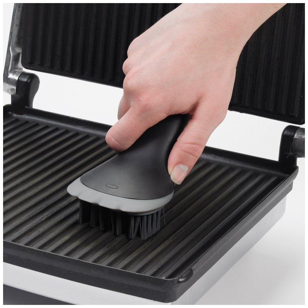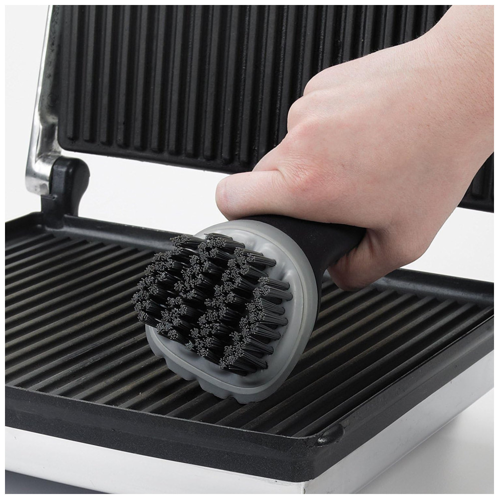 A Churrasqueira Elétrica George Foreman é perfeita para entretenimento. Com sua área de cozimento antiaderente, você pode preparar um delicioso jantar em família ou levá-la para o quintal e fazer um churrasco clássico. A superfície inclinada para grelhar, controles de temperatura variáveis e limpeza fácil tornam simples a preparação de hambúrgueres, frango, aperitivos, sobremesas e muito mais! Além disso, sendo totalmente elétrica, você terá um churrasco de alta qualidade sem carvão, sem propano e sem chamas. A Escova OXO Good Grips para Grill e Panini possui cerdas finas e flexíveis para limpar prensas de panini, grills elétricos e máquinas de waffle com facilidade. A lâmina de silicone inovadora na frente pode ser usada para raspar resíduos gordurosos e pequenos pedaços de comida.