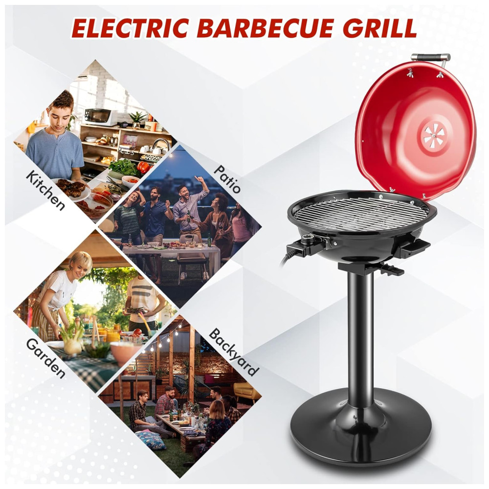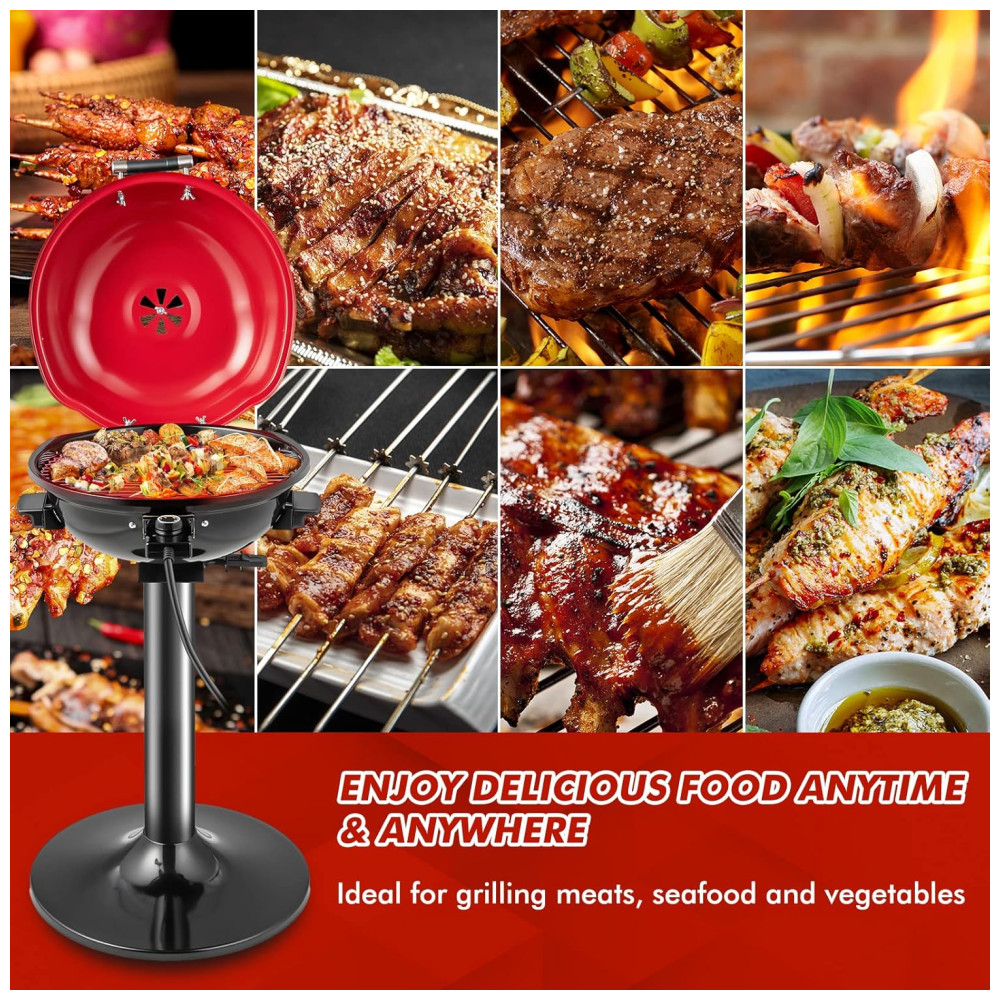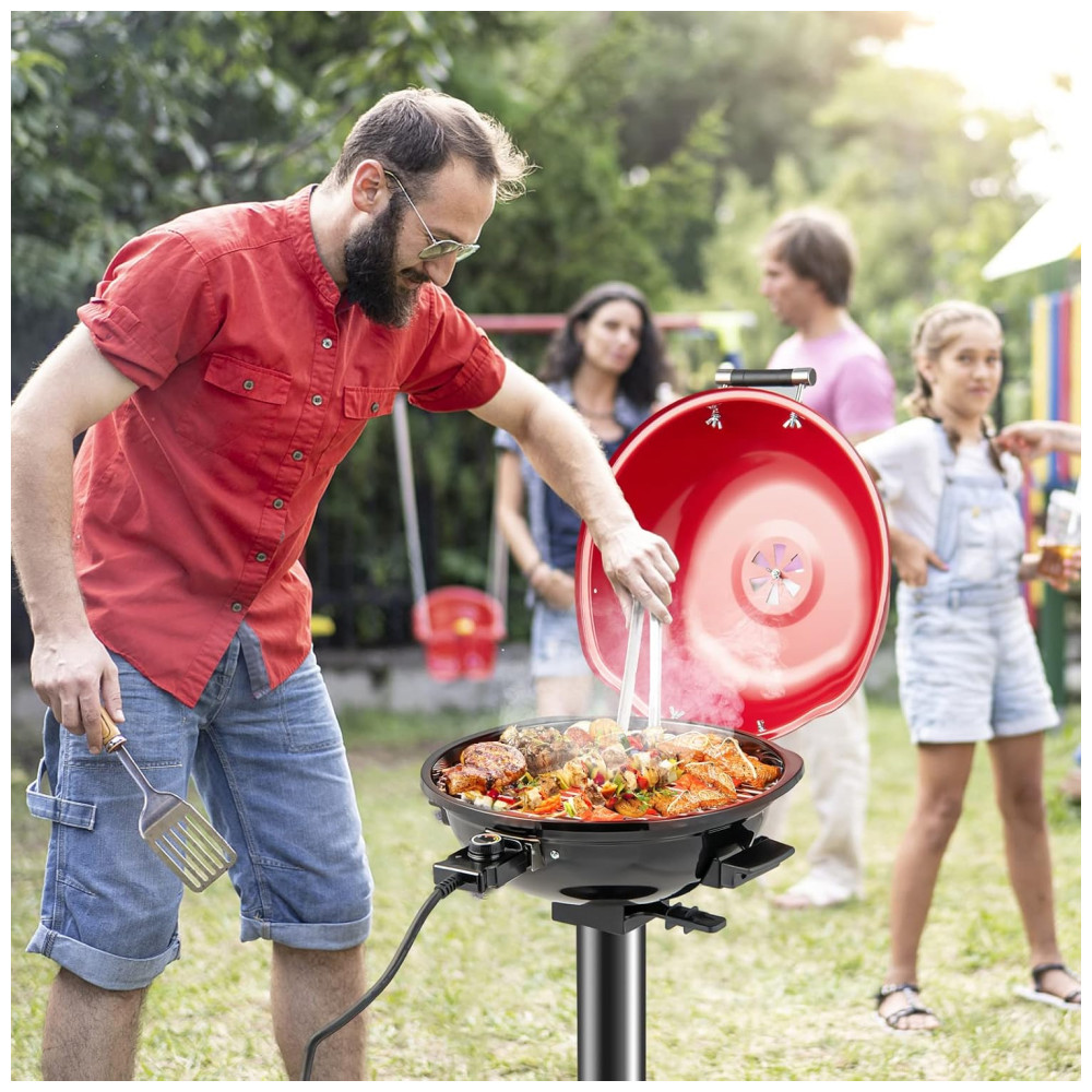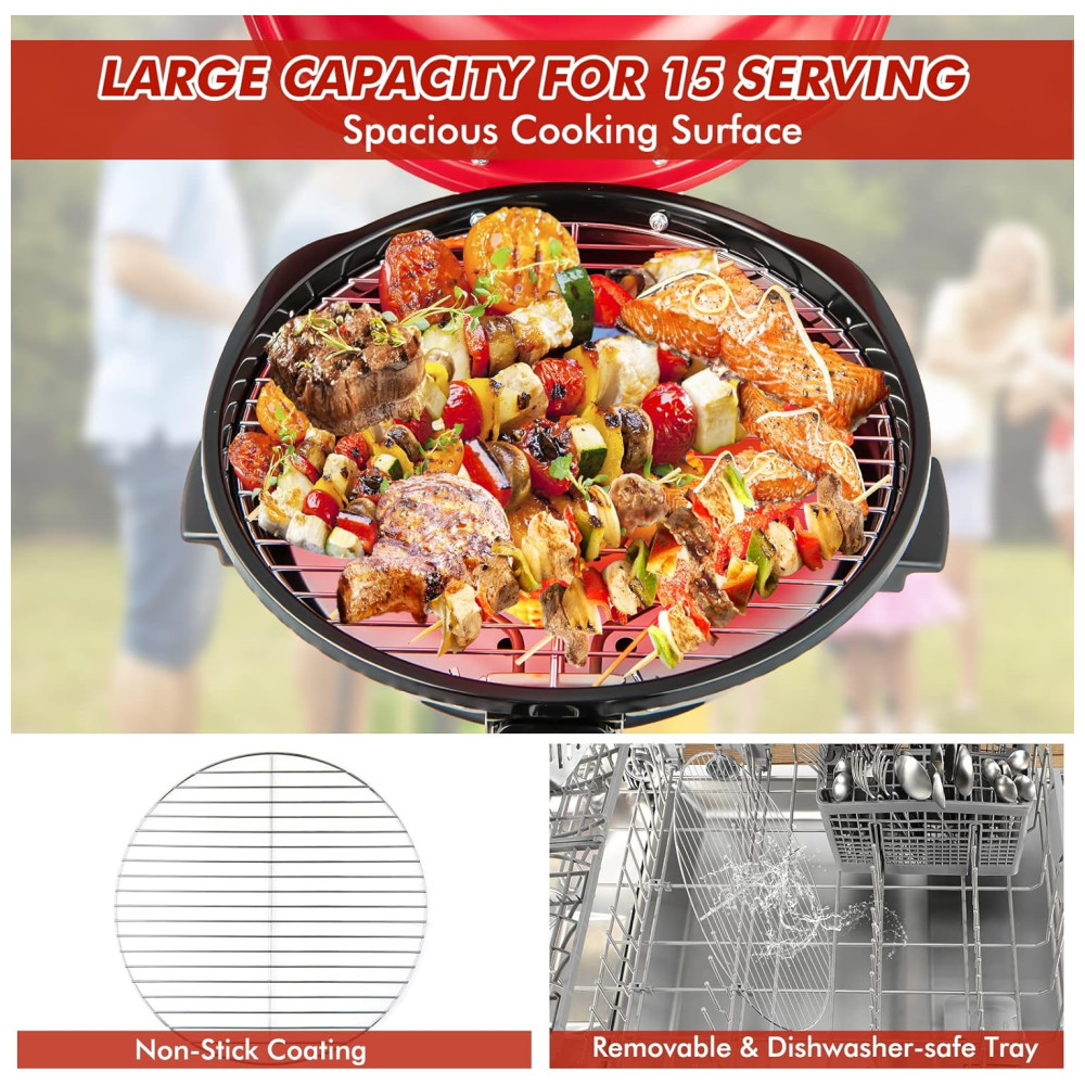 Superfície de cozimento grande para 15 porções Equipado com uma superfície para grelhar de de diâmetro, esta churrasqueira elétrica externa permite grelhar até 15 porções por vez. Se você quiser grelhar com amigos ou entreter muitos convidados, esta churrasqueira pode ser uma boa escolha. Uma grelha elétrica sem o incômodo de carvão e propano, apenas desfrute de uma comida deliciosa a qualquer hora, em qualquer lugar