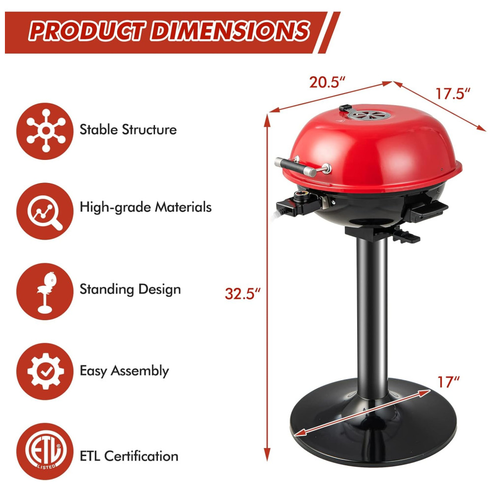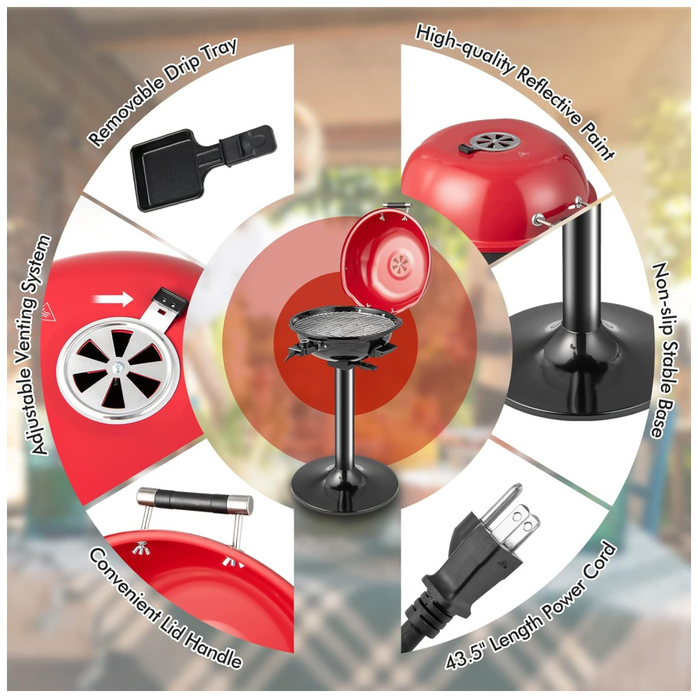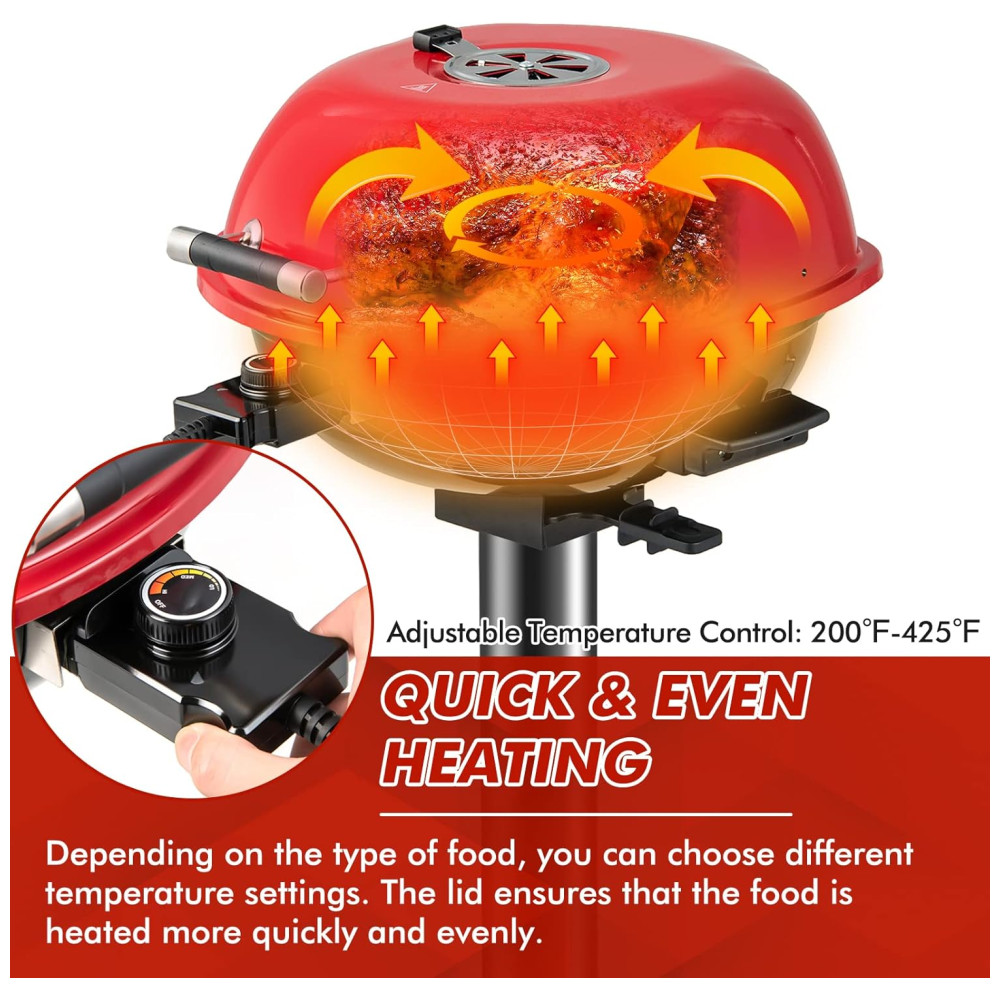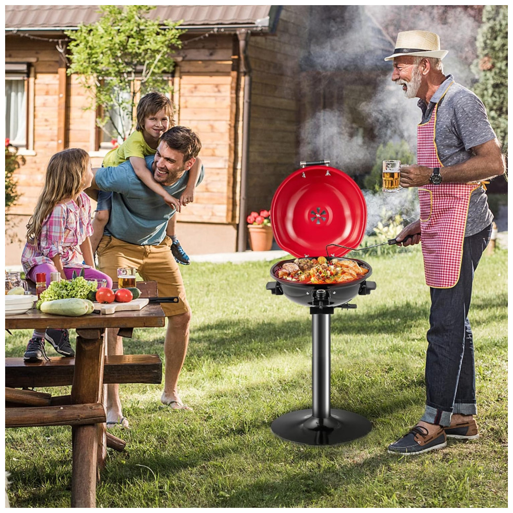 Superfície de cozimento grande para 15 porções Equipado com uma superfície para grelhar de de diâmetro, esta churrasqueira elétrica externa permite grelhar até 15 porções por vez. Se você quiser grelhar com amigos ou entreter muitos convidados, esta churrasqueira pode ser uma boa escolha. Uma grelha elétrica sem o incômodo de carvão e propano, apenas desfrute de uma comida deliciosa a qualquer hora, em qualquer lugar