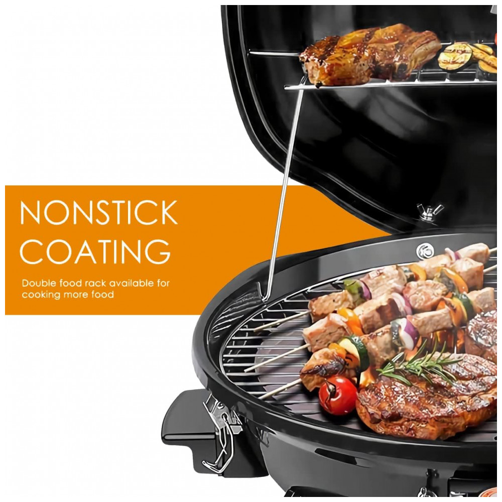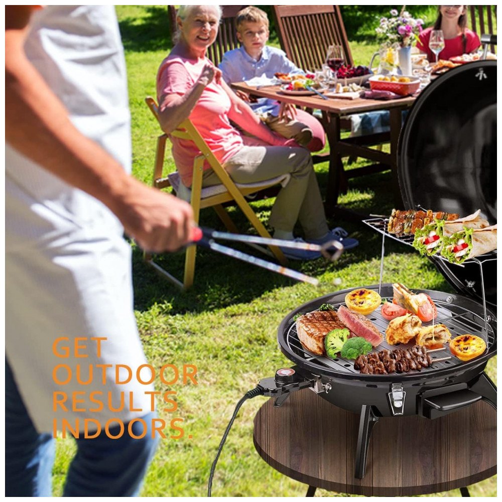 APROVADO PARA APARTAMENTO Seu proprietário vai adorar esta churrasqueira tanto quanto você, porque o sistema totalmente elétrico oferece grelhados de alta qualidade sem carvão, sem propano e sem chamas. Especialmente ótimo para apartamentos, pátios e outras áreas onde carvão ou propano não podem ser s, e o rack de alimentos é projetado para aquecer e zenar alimentos.