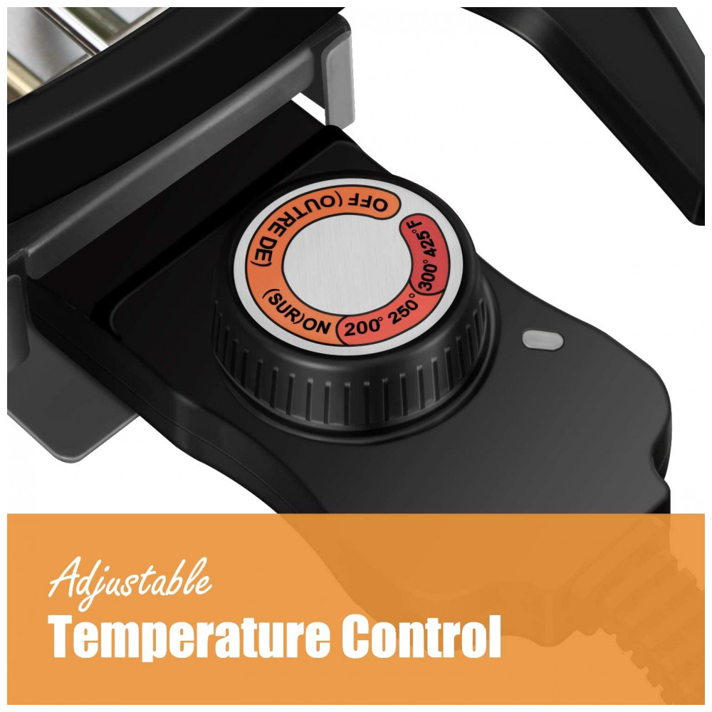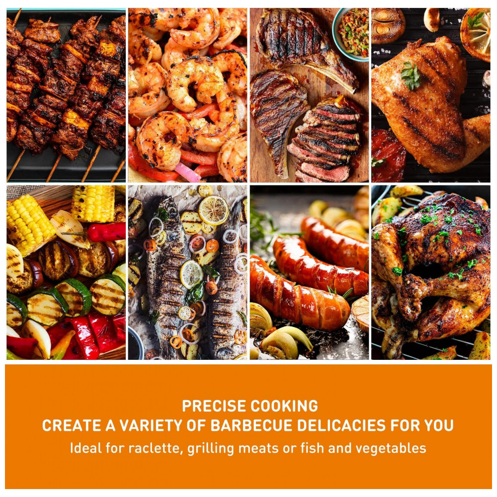 CONTROLE DE TEMPERATURAOs controles de temperatura ajustáveis facilitam encontrar a quantidade certa de calor para o que quer que você crie. O sistema de ventilação pode dissipar o calor com eficiência e manter o bife macio e suculento. A grade de cozimento de chapa laminada a frio antiaderente de dupla face é fácil de limpar.