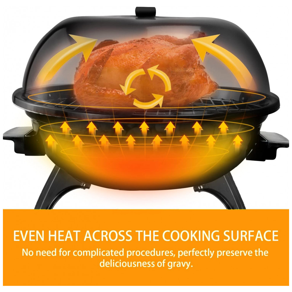AQUECIMENTO RÁPIDO O design conveniente da grelha elétrica portátil do capô e da tigela interligados permite um aquecimento de ciclo rápido, o que permite aquecer a carne de maneira mais uniforme e com um sabor mais delicioso. Com a alça legal você pode desfrutar do churrasco em qualquer lugar.