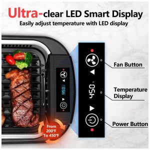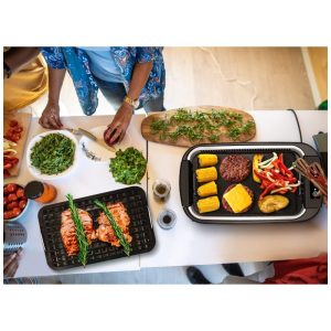 Aquece rápido e cozinha uniformemente Com os tubos de aquecimento Double U, nossa churrasqueira interna fornece comida com aquecimento rápido e consistente, desfrute de um delicioso churrasco em poucos minutos. A chapa perfurada da grelha pode filtrar o excesso de óleo, além de deixar a carne com as marcas da grelha como um grelhador a carvão. A placa de grelha pode grelhar deliciosos ovos e bacon para o café da manhã, panquecas e muito mais. Qualquer coisa que você grelharia do lado de fora, você pode grelhar dentro de casa Desfrute de churrasco e cerveja dentro de casa juntos