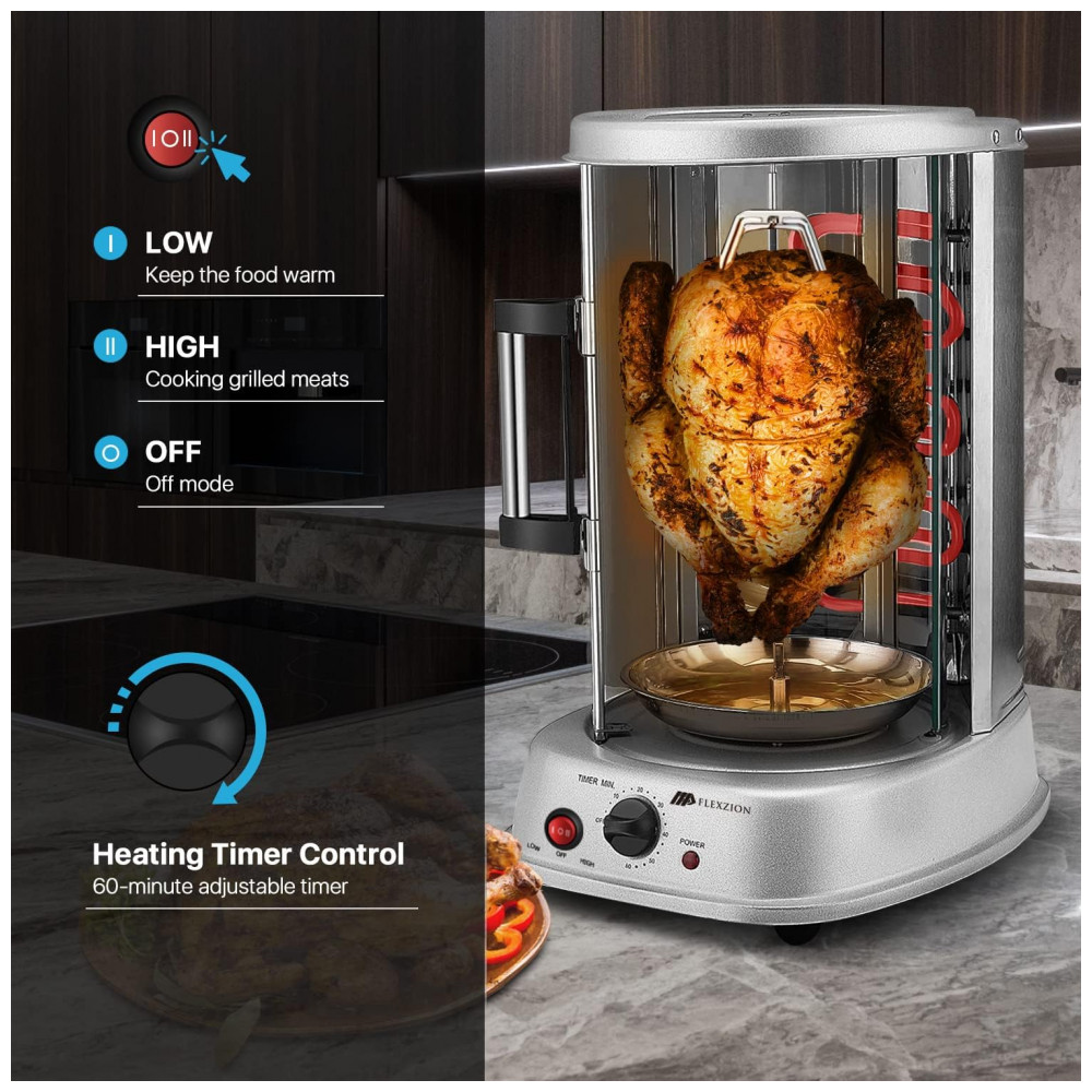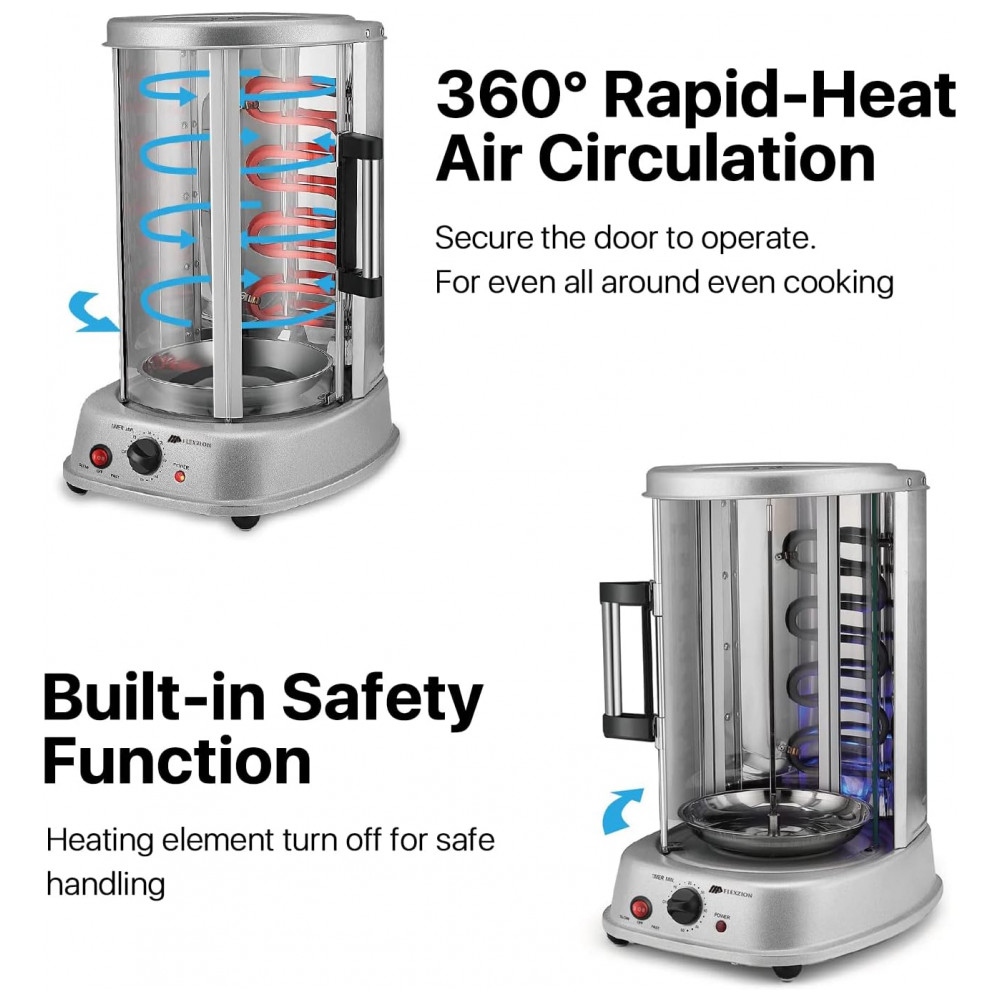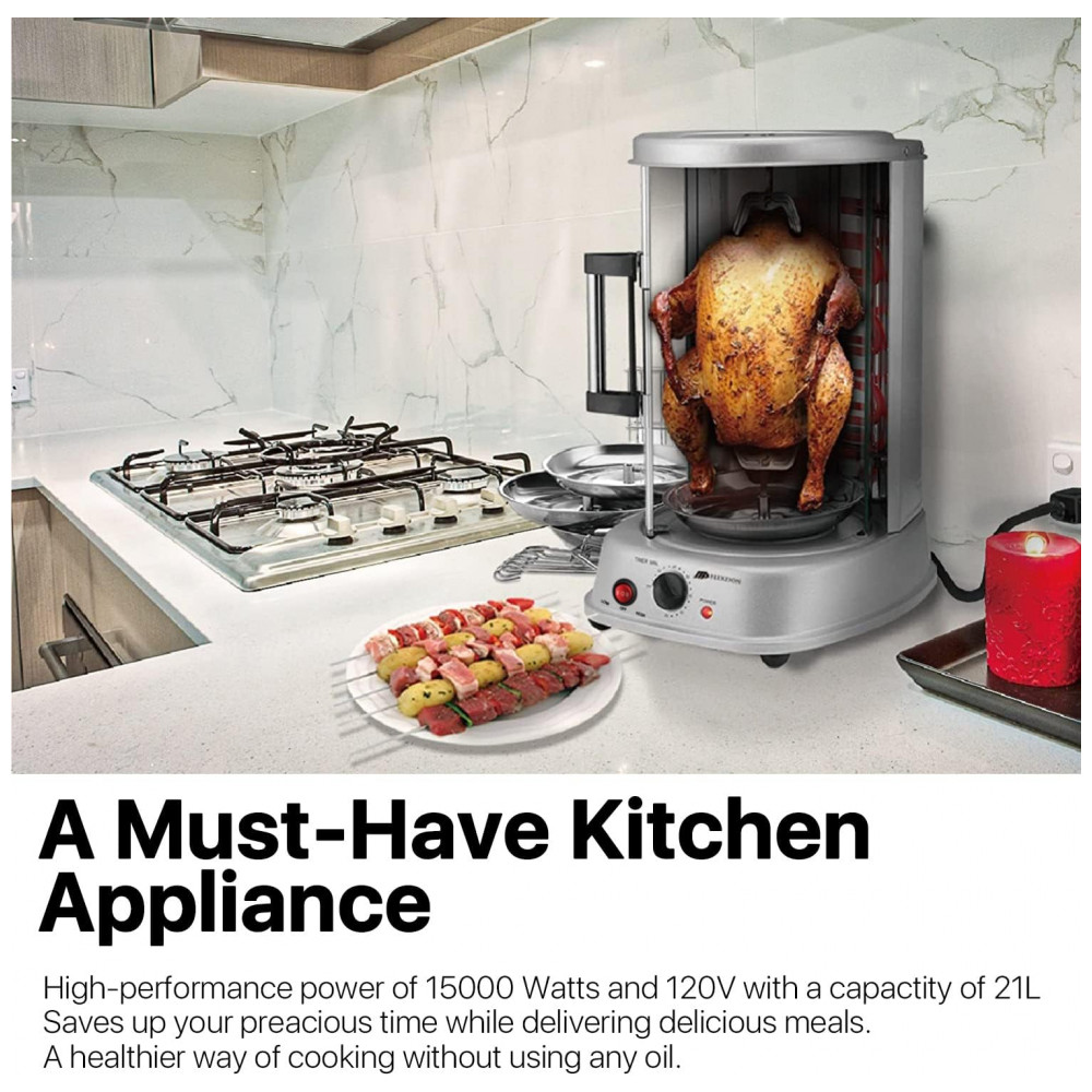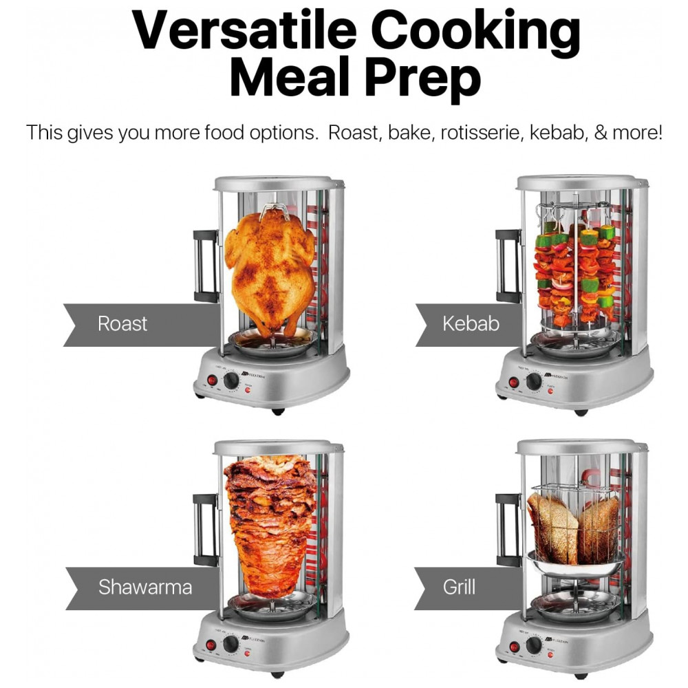 NOSSA MELHOR AJUDA DE COZINHA Basta colocar a carne de sua preferência e ajustar o tempo e a temperatura e aguardar um grelhado perfeito. Ótimo para reuniões, pode ser como máquina de shaw, máquina de giroscópio, grelha de kebab e rotisseries e torrefadores de frango. Um presente legal para amigos e familiares