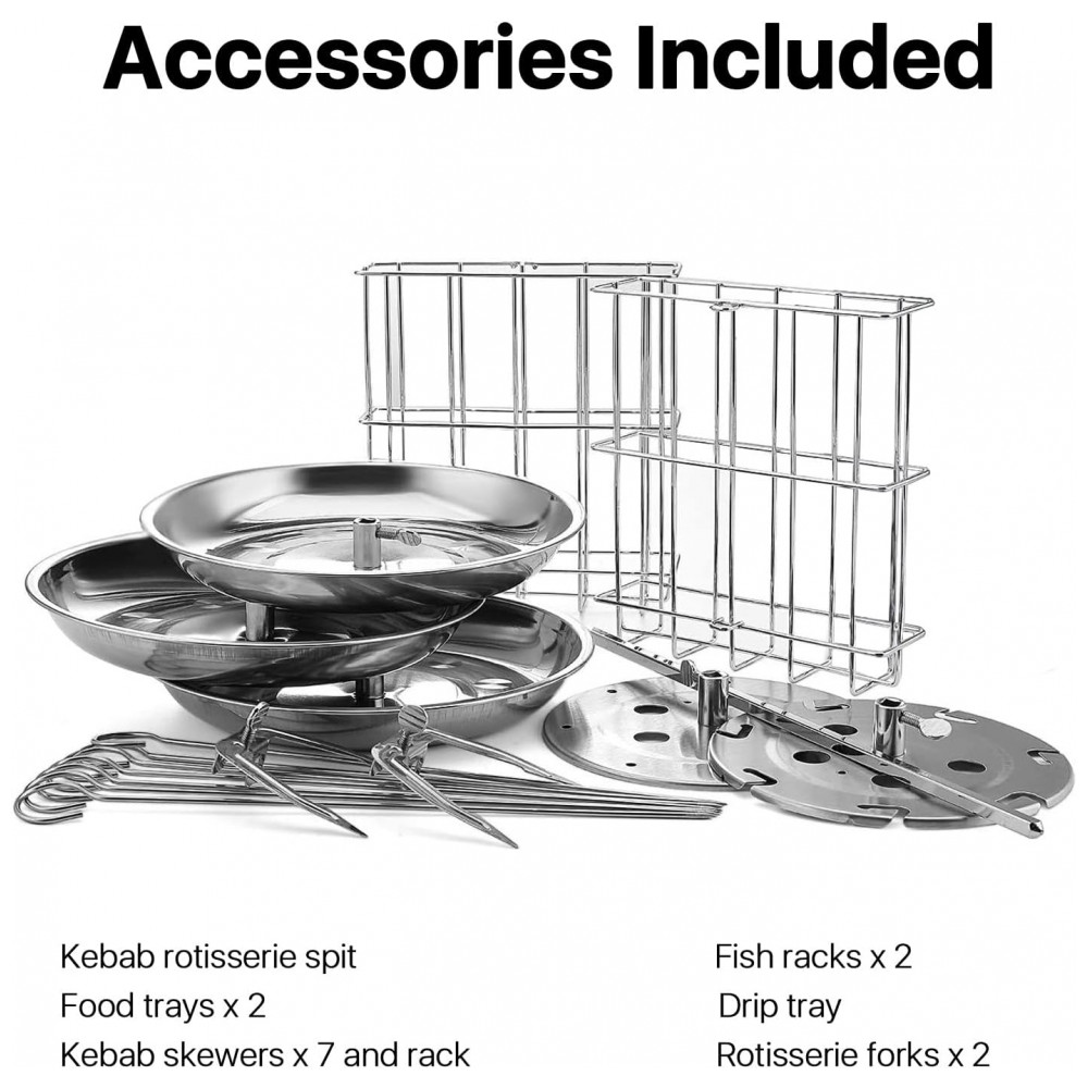 MÉTODOS DE COZINHA VERSÁTEIS 5 EM 1 Este forno vertical multifuncional dá a você controle total de sua escolha de iguarias. Imagine usar apenas uma ferramenta para assar frango, carne bovina, cordeiro, churrasco, shaw, tacos, giroscópio, tandoor e muito mais pratos