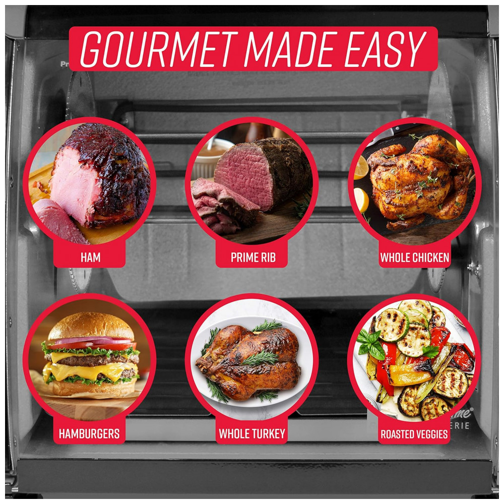 DESLIGAMENTO AUTOMÁTICO Um cronômetro ajustável de 3 horas torna o Ronco Showtime Modern Rotisserie Oven mais fácil de usar do que nunca e desligará automaticamente quando o tempo acabar, para que você não precise se preocupar com alimentos cozidos demais