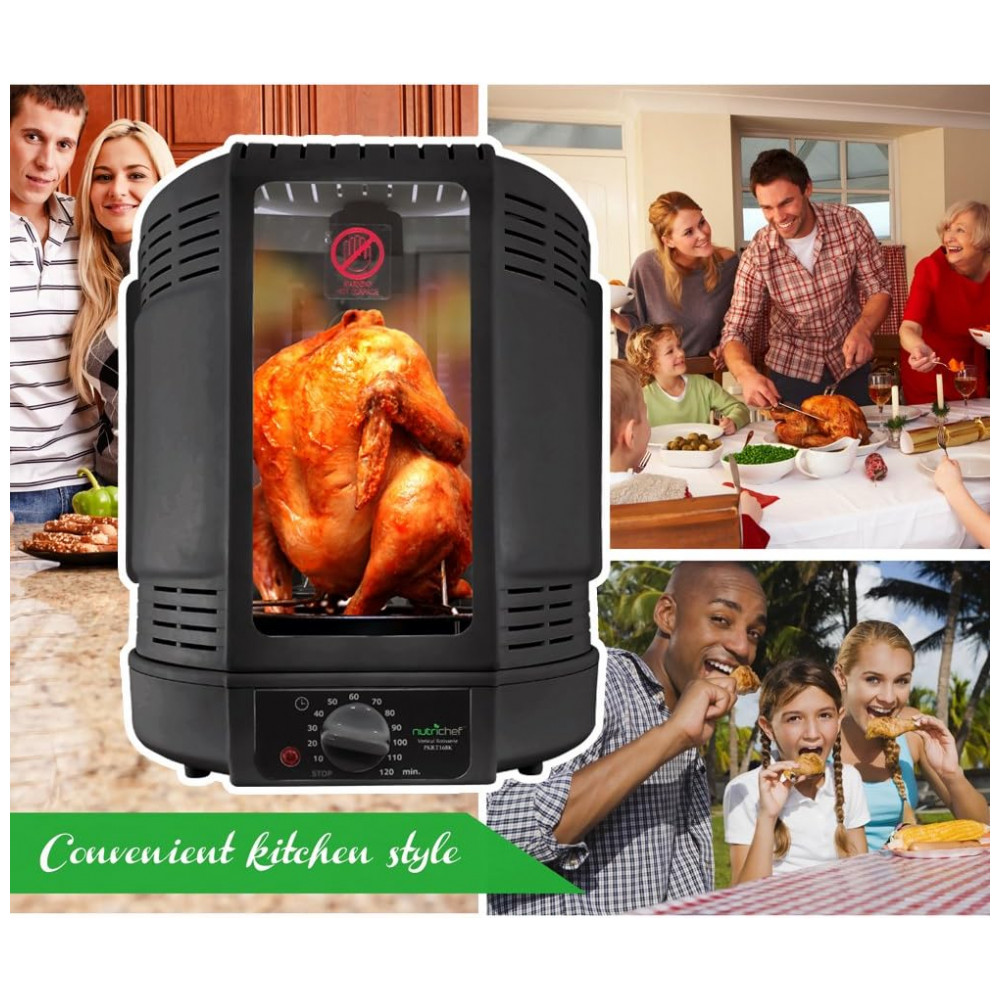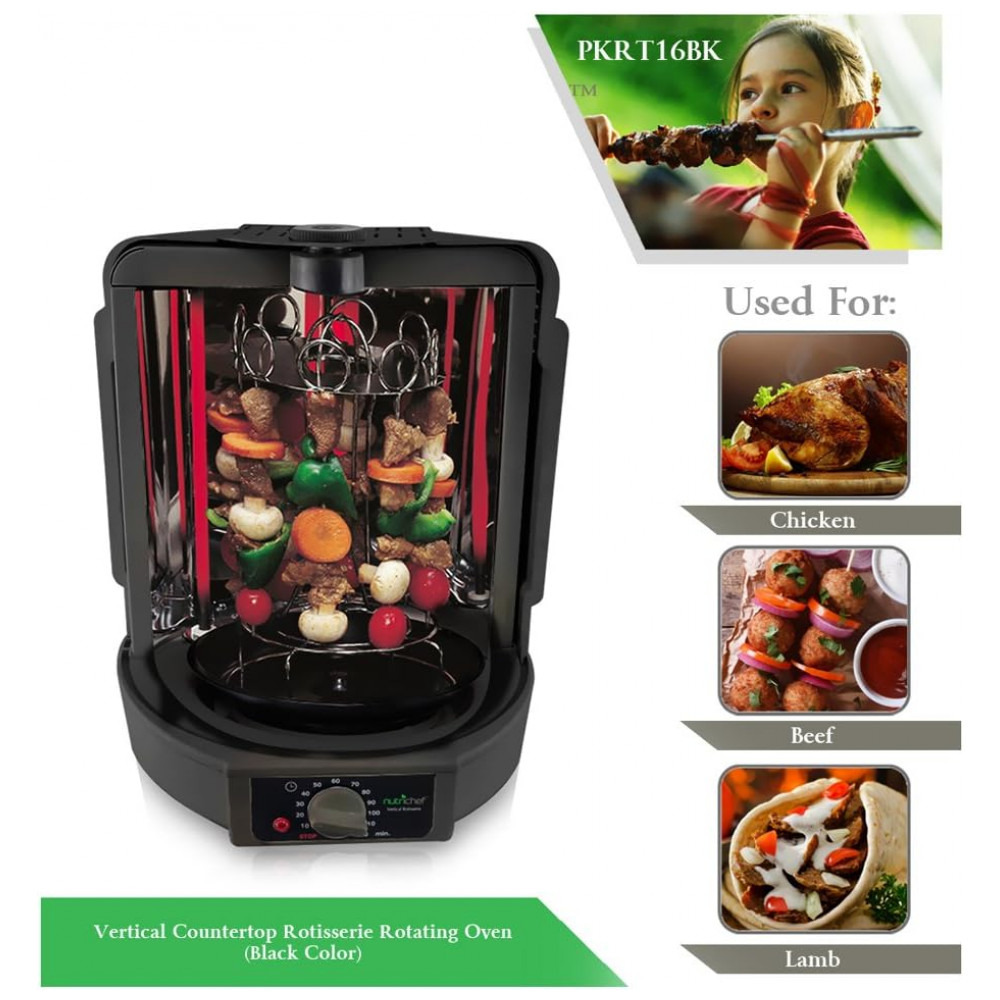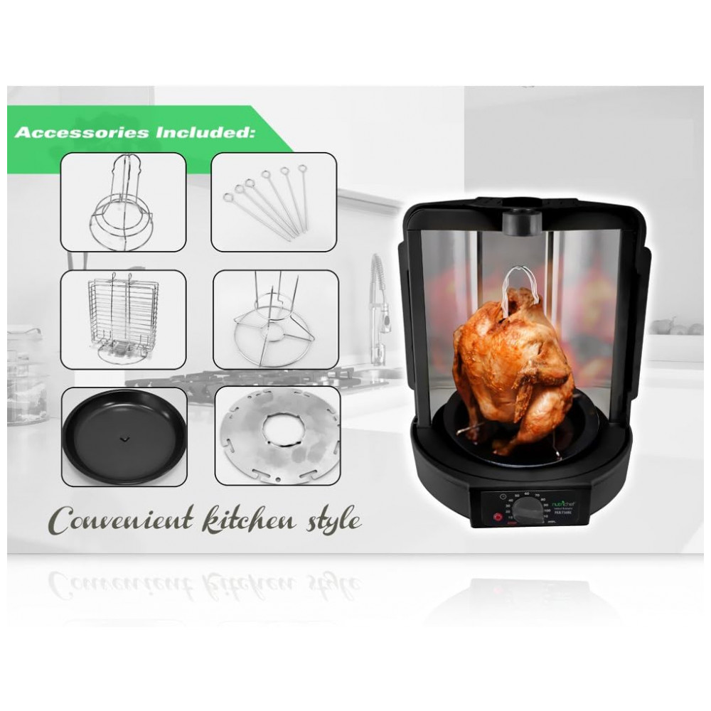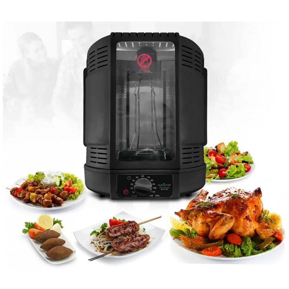 COZINHA SAUDÁVEL Bem vindo ao mundo da alimentação fácil e saudável com a nossa Rotisserie Vertical NutriChef. A gravidade reduz a gordura dos alimentos colocados no interior, pois o excesso de gordura dos alimentos é drenado para a bandeja coletora abaixo