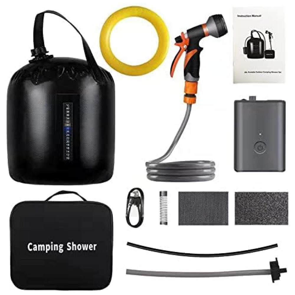 Chuveiro Portátil 20L com Bomba a Pressão e Mangueira para Acampamento B.TAWD Preto