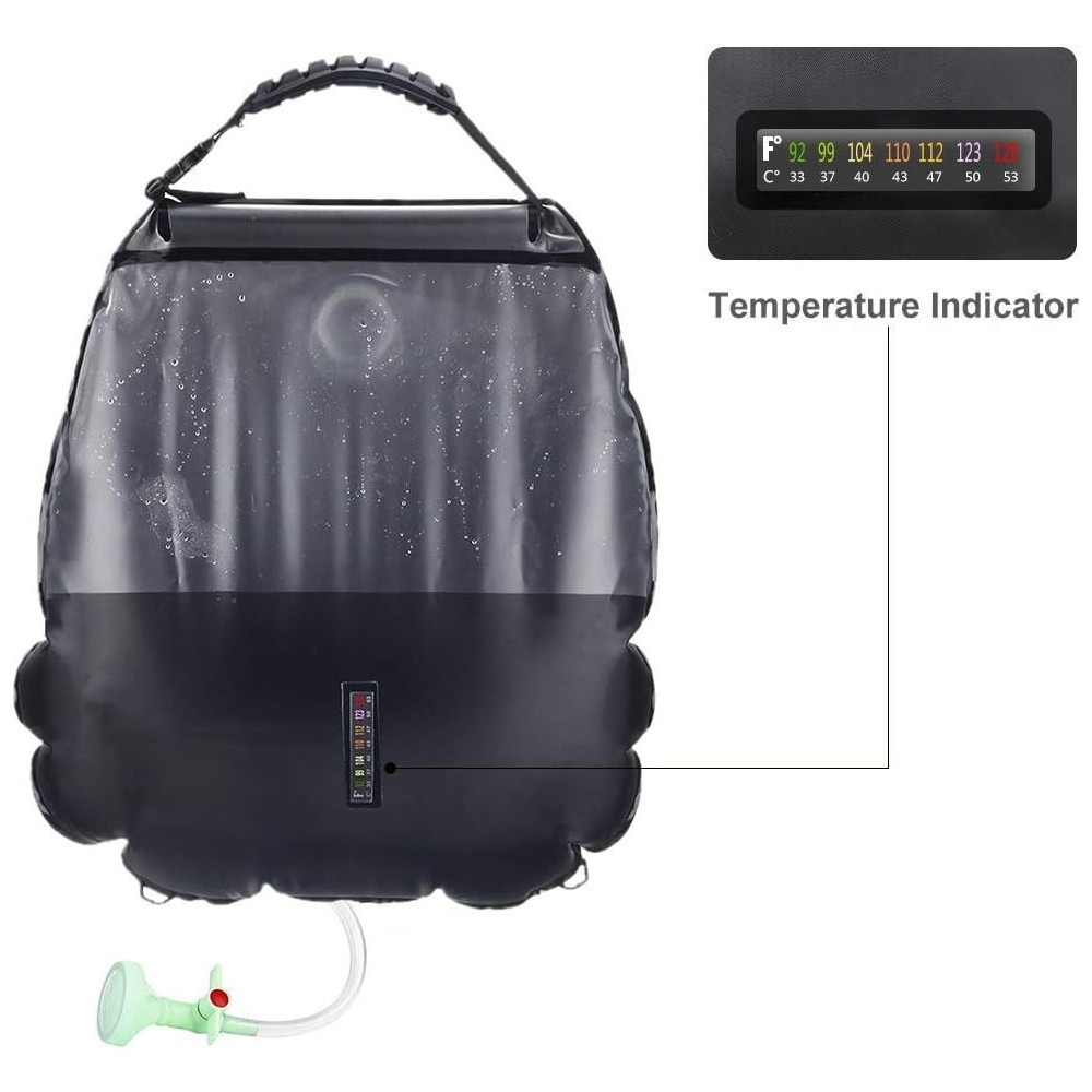 Alta capacidade de água Este saco de banho de acampamento pode transportar até 5 galões de água para tomar banho ao ar livre, permitindo que você desfrute de um banho melhor e refrescante em qualquer lugar.