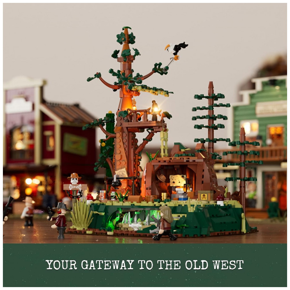Compatível com outros conjuntos Western Lumibricks, permite expansão de cenários modulares e integração de personagens. Inclui manual sequencial e marcador de página exclusivo em formato de ingresso.