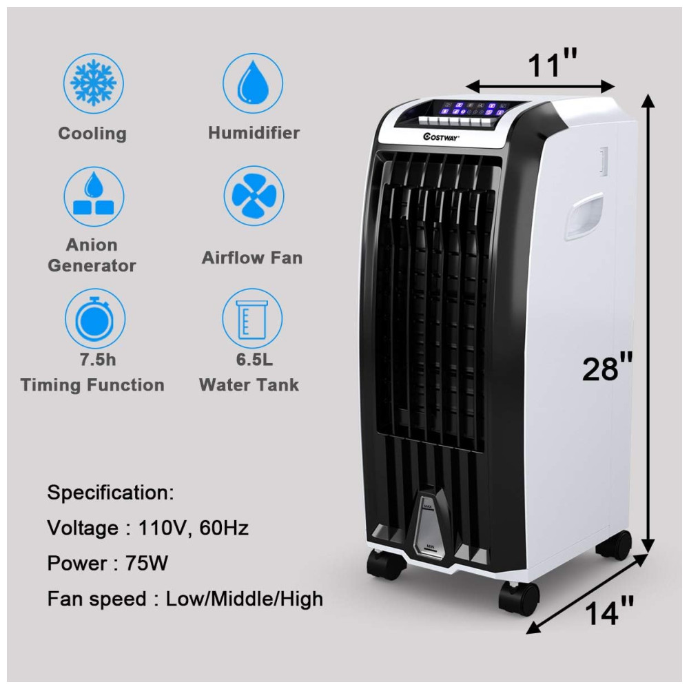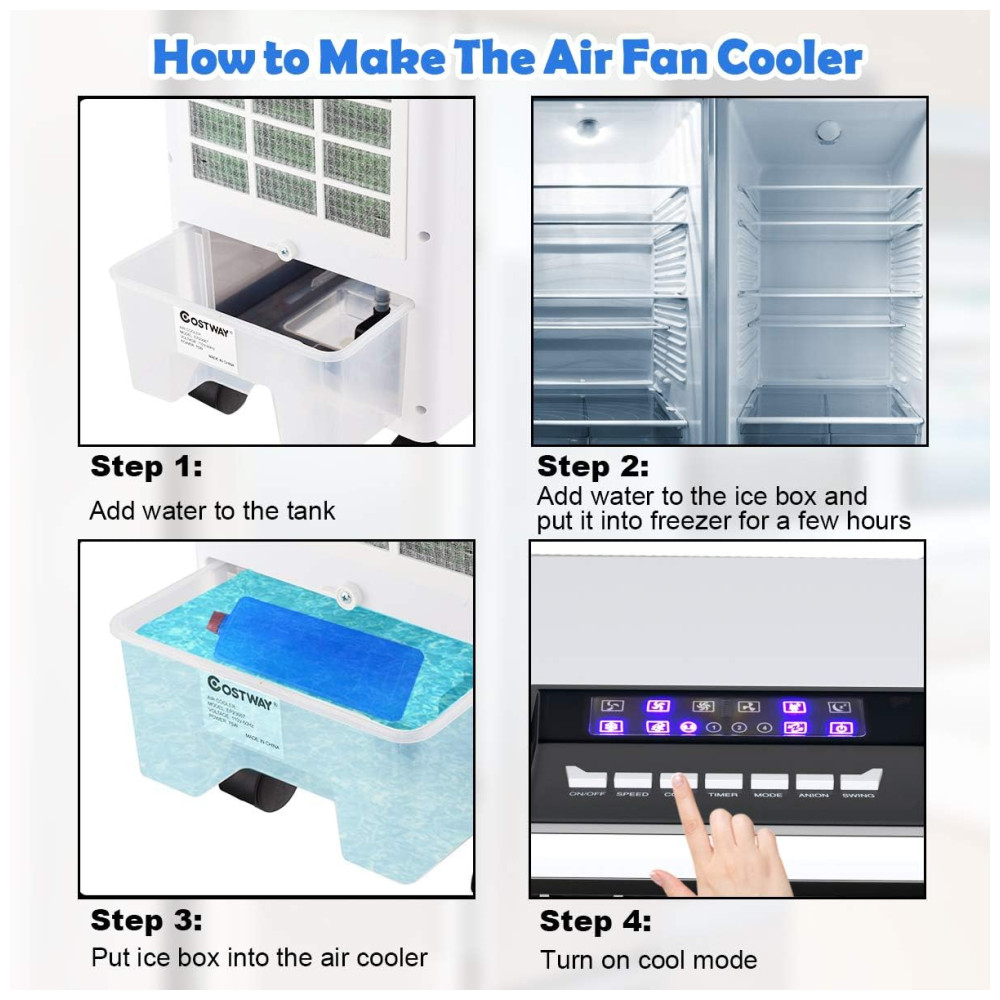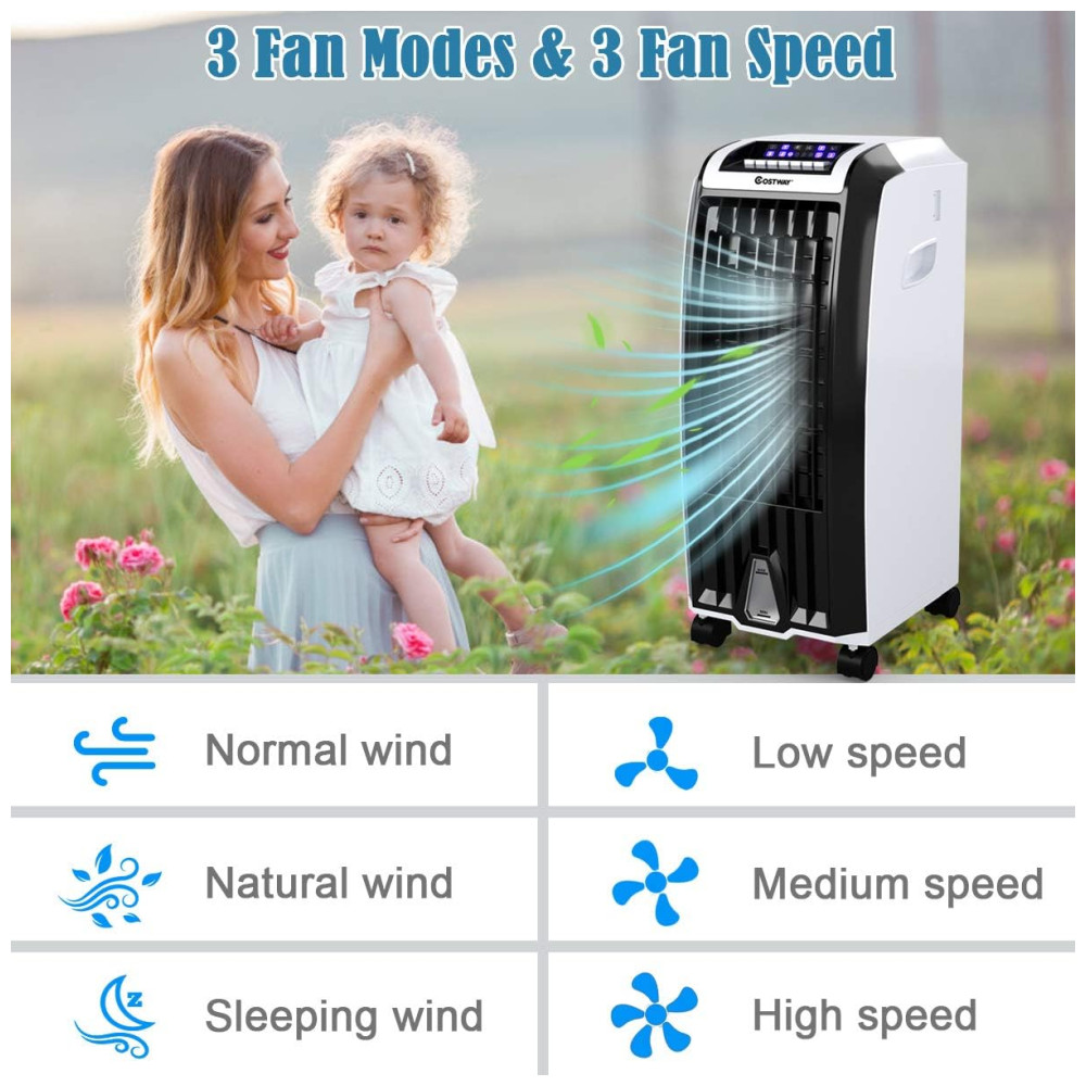 3 Velocidade do Ventilador Ventilador do refrigerador de 3 velocidades com controle de toque fácil, o refrigerador evaporativo projetado para o resfriamento do espaço pessoal. Você pode selecionar a energia eólica perfeita conforme necessário. Você pode desfrutar de baixa velocidade quando está dormindo e média velocidade para relaxar, bem como alta velocidade no verão escaldante.