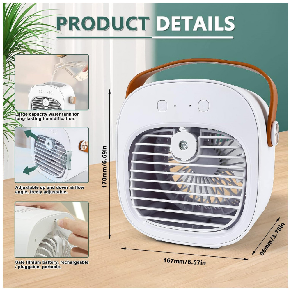 Condicionador de ar multifuncional o refrigerador de ar foi recentemente atualizado para o design 2 em 1 de pequeno ar condicionado, umidificador de ar. O refrigerador de ar possui 3 modos de vento Baixo, Médio, Alto. Você pode adicionar um pouco de água ao tanque, o ventilador de resfriamento se torna um umidificador de ar, permitindo que você hidrate e retenha a umidade no verão.