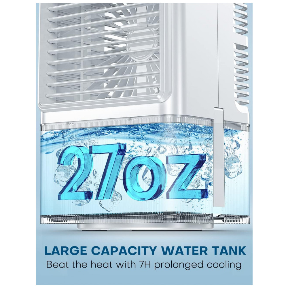 Fique fresco e confortável durante todo o verão Com um grande tanque de água destacável de 830mL, este ar condicionado portátil para quarto pode fornecer até 7 horas de resfriamento contínuo. Em poucos minutos, você sente a brisa fresca. Mantenha você fresco e confortável, sem ter que reabastecer constantemente o tanque.