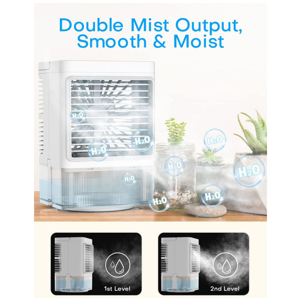 Nosso ar condicionado de mesa portátil tem 2 modos diferentes de névoa e 2 palitos de algodão. O refrigerador evaporativo pequeno não apenas esfria o ar, mas também aumenta a umidade do ar. Os modos de névoa ajudam a aumentar o efeito de resfriamento, permitindo que você se sinta fresco e confortável mesmo nos dias mais quentes.