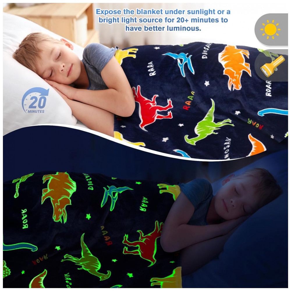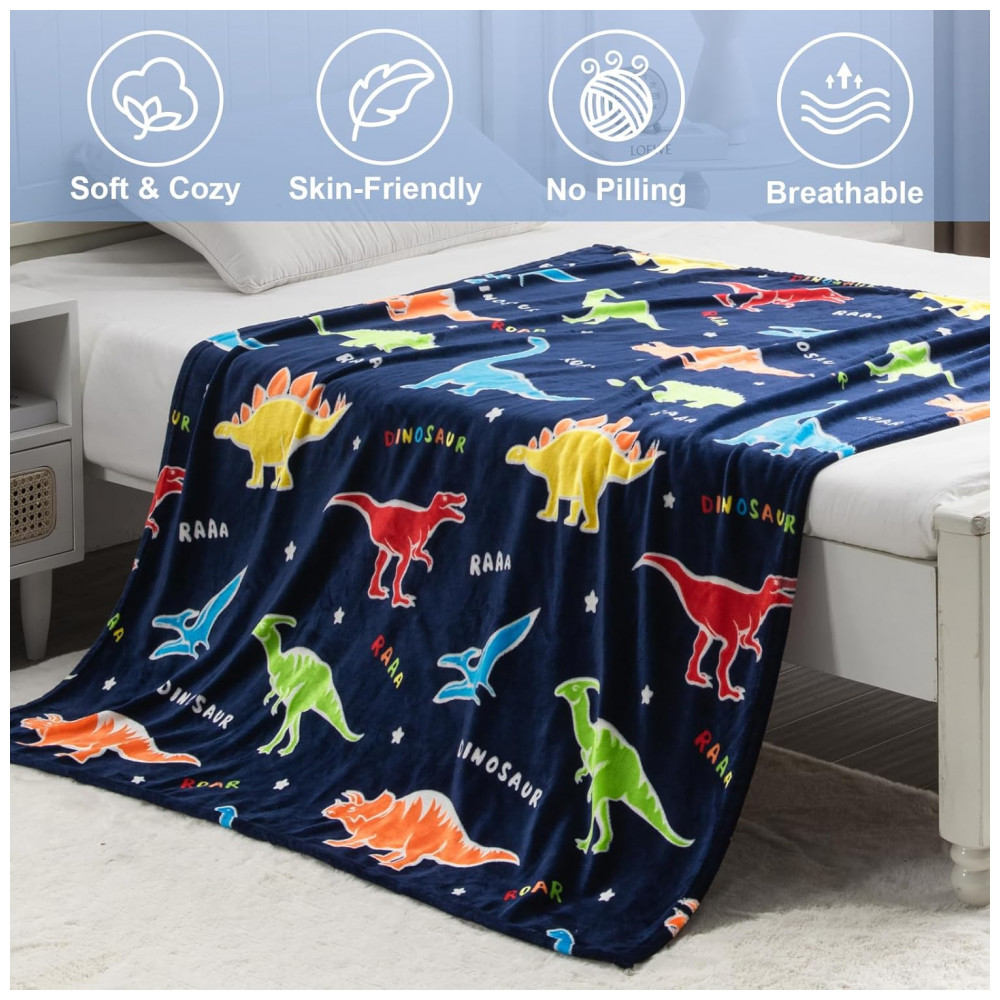 Cobertor de Dinossauros que Brilha no Escuro para Meninos e Meninas – Melhores Presentes de Natal Aniversário Levens