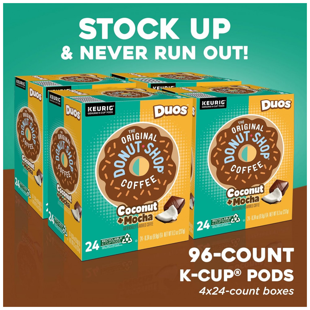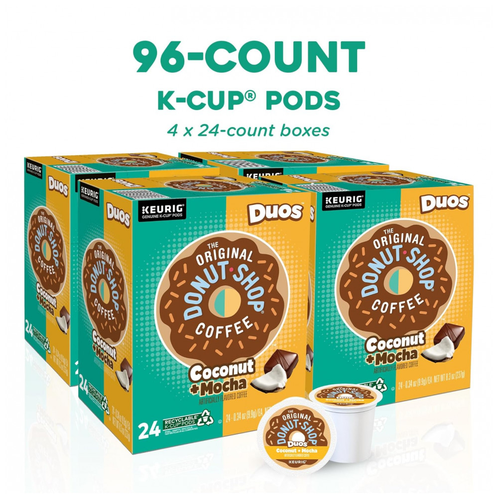 Cápsulas de K Cup Keurig do The Donut Shop TODS de café torra média com sabor Mocha de coco, 96 unidades, Kosher