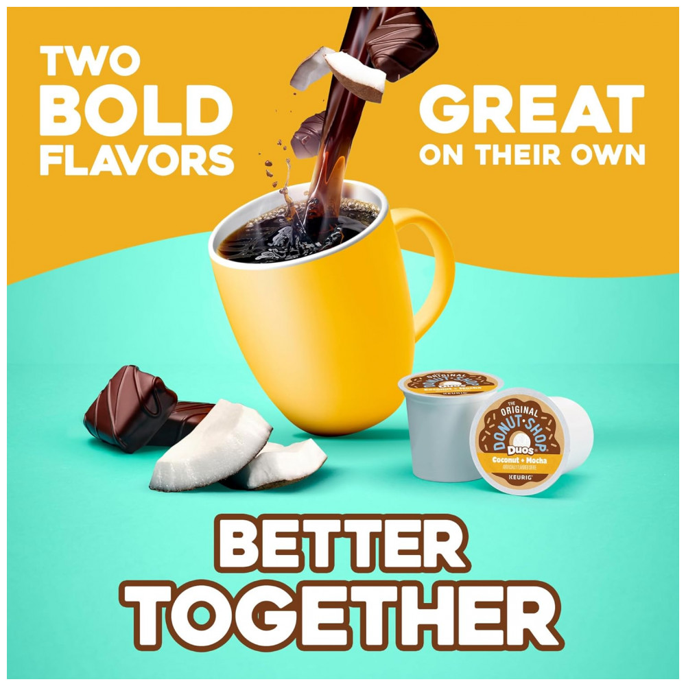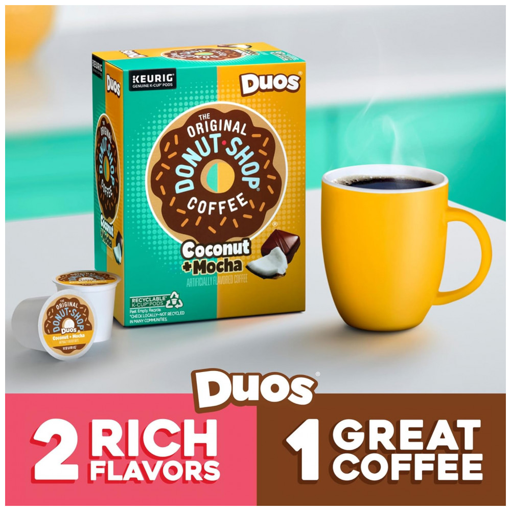 As cápsulas K Cup de Mocha de Coco são para os originais escolhidos que uma rosquinha de cobertura de chocolate de Coco no café, e não a lado. Com sabor completo e fácil de usar, este café com sabor torra significa uma das melhores coisas da vida simplesmente um ótimo café. É uma variedade extra ousada, portanto, cada cápsula contém mais café 100 arábica do que as cápsulas comuns da K Cup. Esses K Cup são feitos com todos Ke Cup Pod e podem até 12 onças 54ml. de The Donut Shop Coco café cada. Cada cápsula K Cup é excelente com o café moído mais fresco e sempre produz um café perfeito e com excelente sabor. União Ortodoxa Certificada Kosher