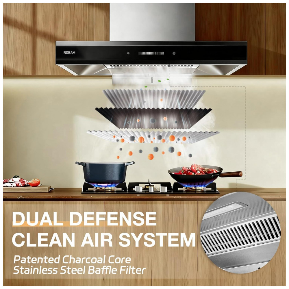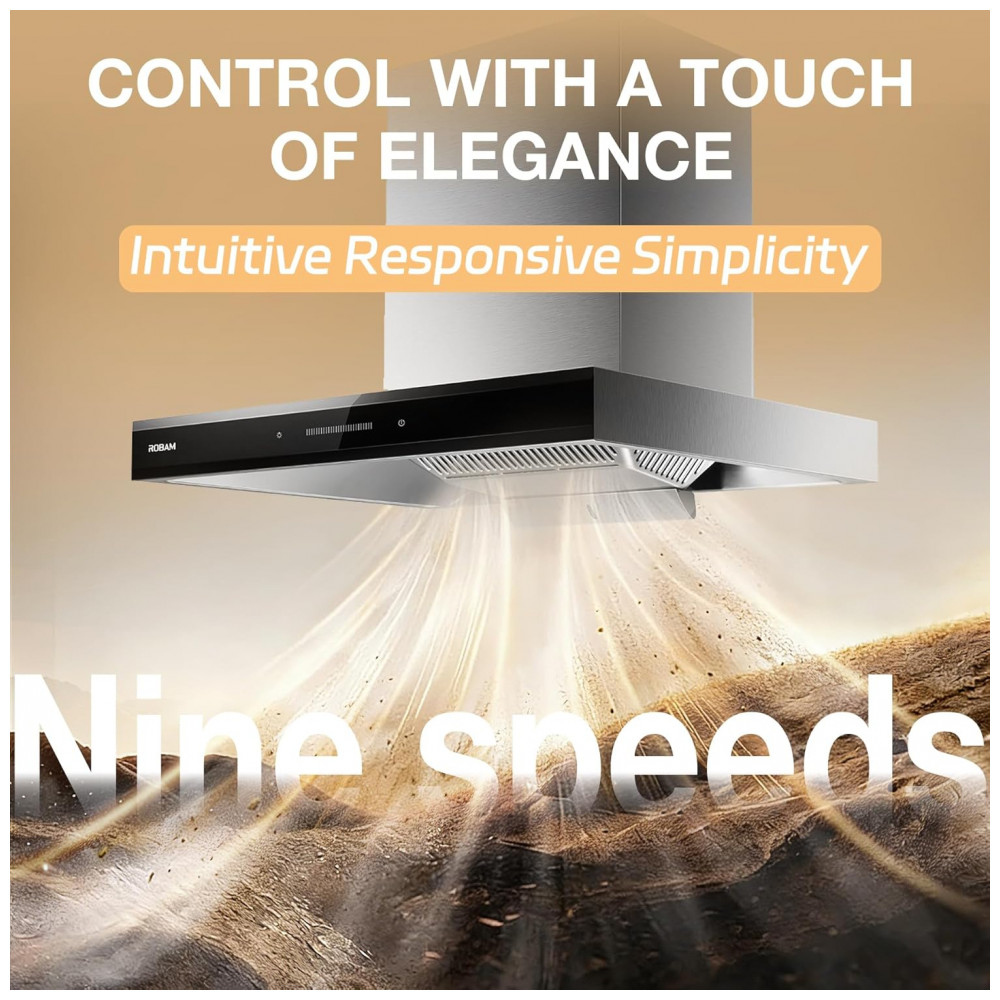 Coifa de embutir 76cm Robam inox e vidro CleanAir motor brushless 1100 CFM 9 velocidades 110V