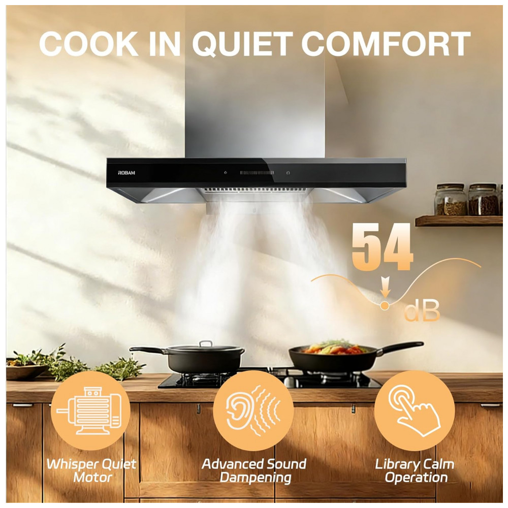A coifa de embutir sob armário Robam A831 de 76 cm com acabamento em inox metálico é indicada para uso em cozinhas residenciais com fogões de 30 polegadas, operando em configuração duto ou recirculação conforme o projeto de ventilação. O corpo em aço inoxidável com elementos em vidro foi dimensionado para instalação sob armário ou em parede, proporcionando área de captura compatível com a zona de cocção completa.