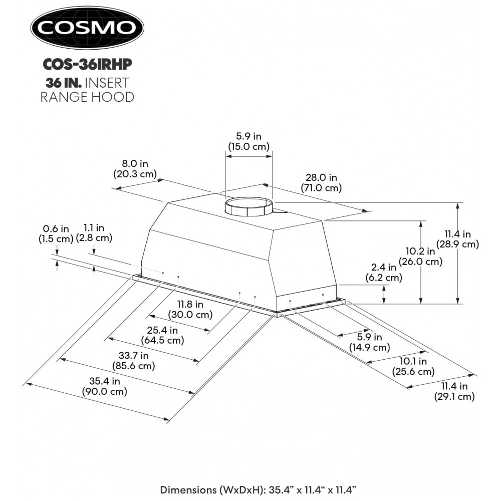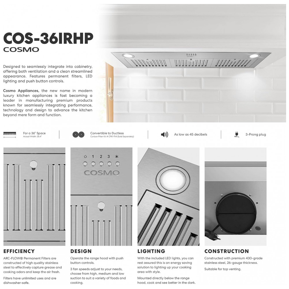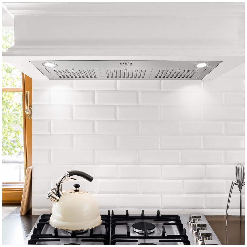 A coifa de embutir COSMO COS-36IRHP é indicada para instalação em módulos de armário ou estruturas personalizadas sobre fogão ou cooktop, com montagem embutida e base voltada para a área de cocção. A construção utiliza aço inoxidável escovado, adequado para ambientes sujeitos a calor, vapor, gordura e óleo, mantendo alinhamento visual com outros eletrodomésticos em inox.
