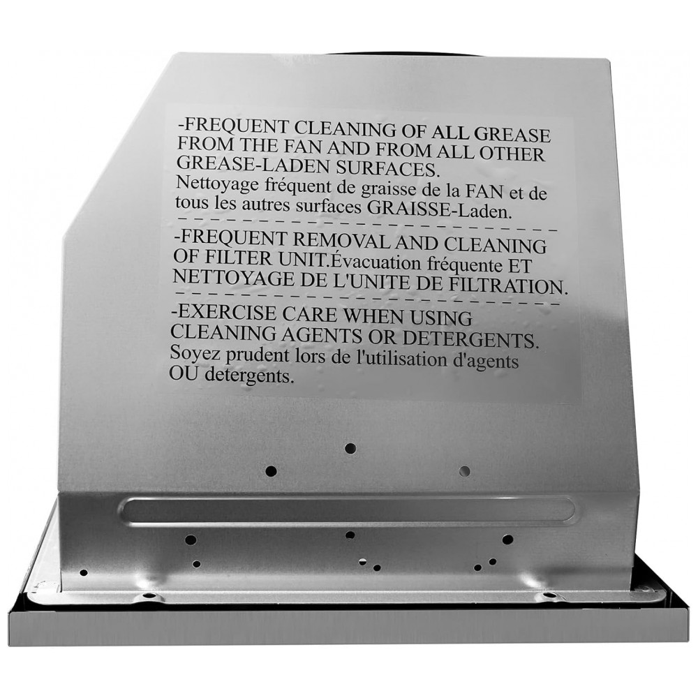 Conteúdo da embalagem: Coifa de embutir, filtros permanentes, damper para saída de ar, kit de instalação, cabo de alimentação com plugue, manual do usuário em inglês