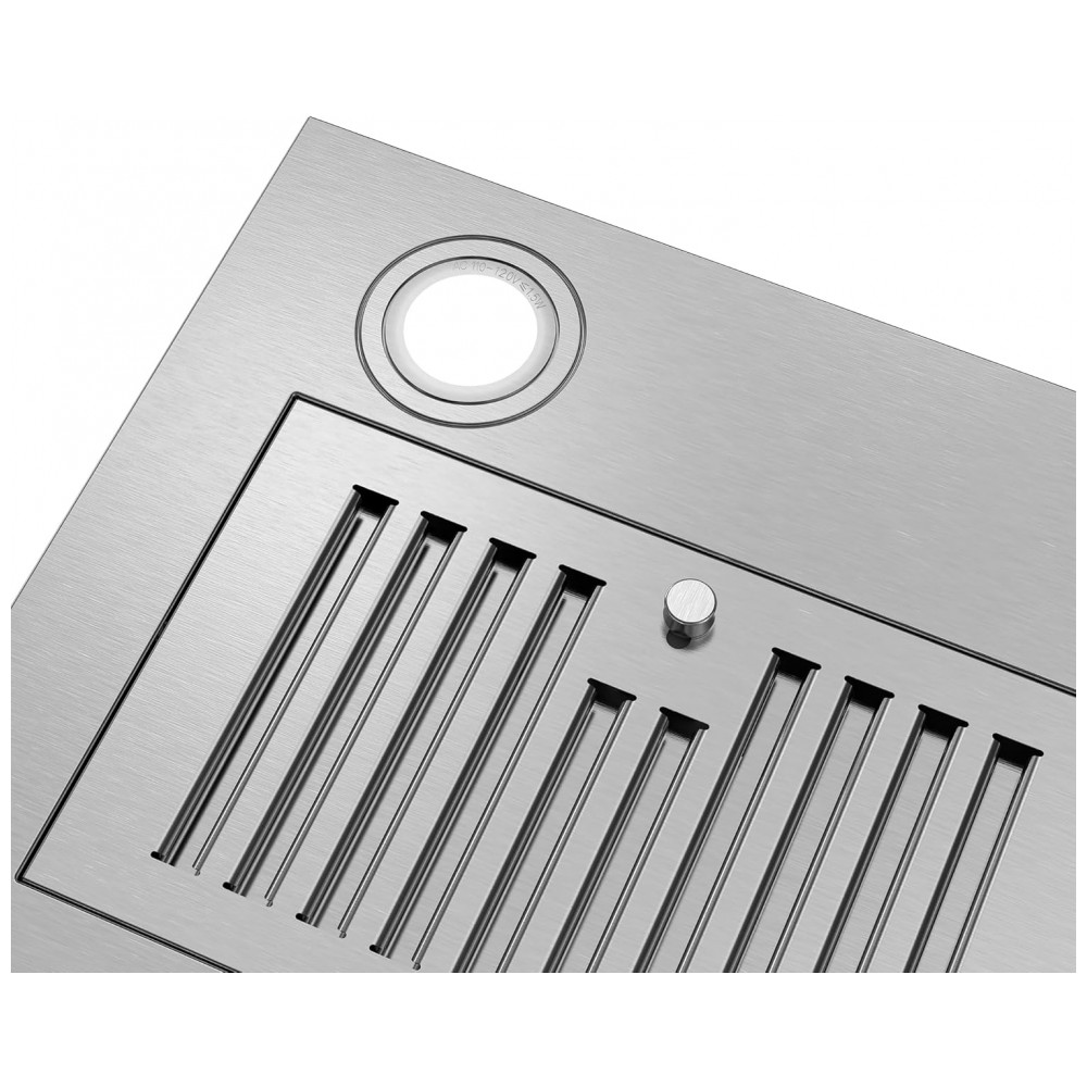 Recursos e tecnologias: Motor com 3 velocidades, controles por botão frontal, filtros permanentes em aço inox tipo ARC-FLOW, iluminação LED inferior, saída superior para duto circular 15 cm, possibilidade de operação recirculante com filtro de carvão ativado específico