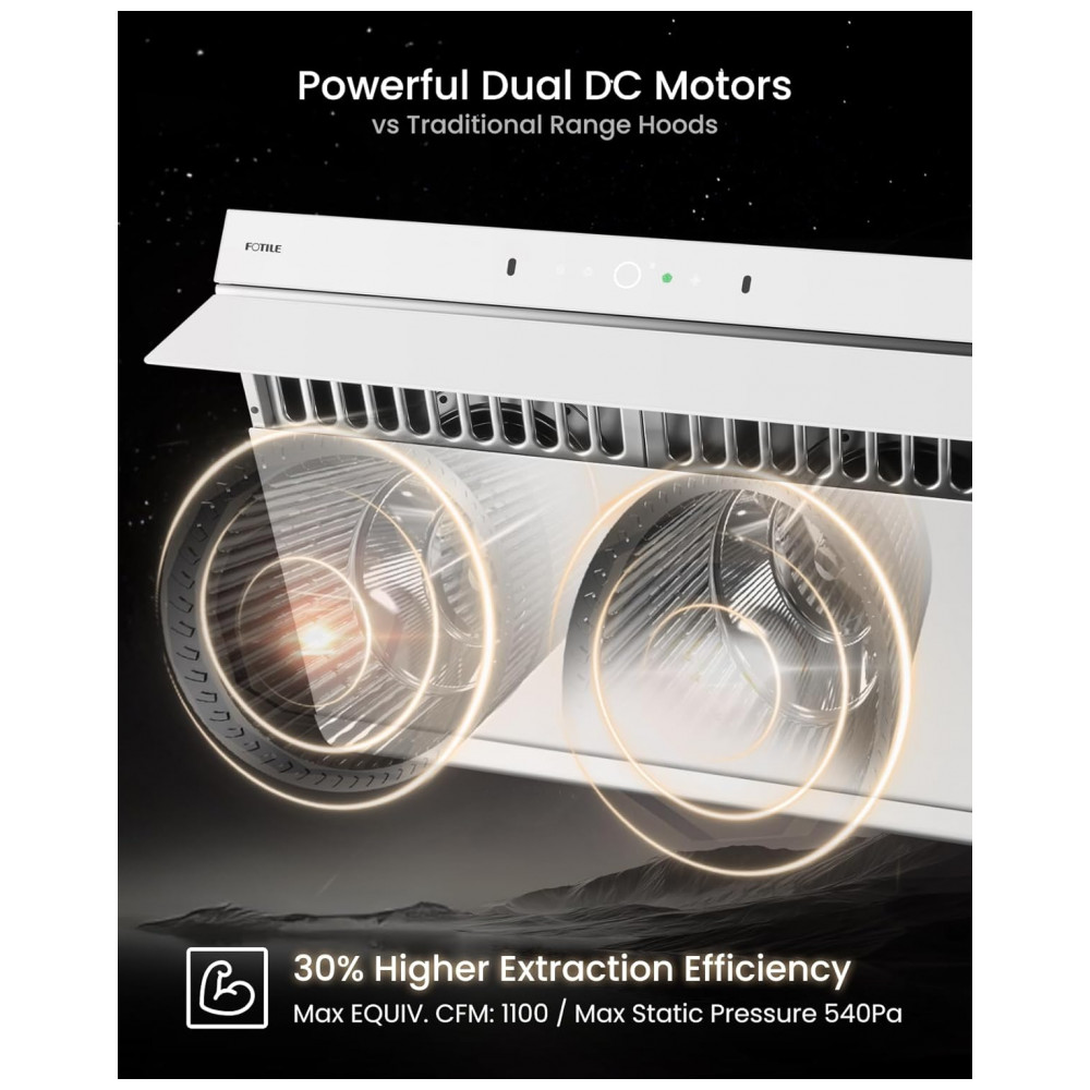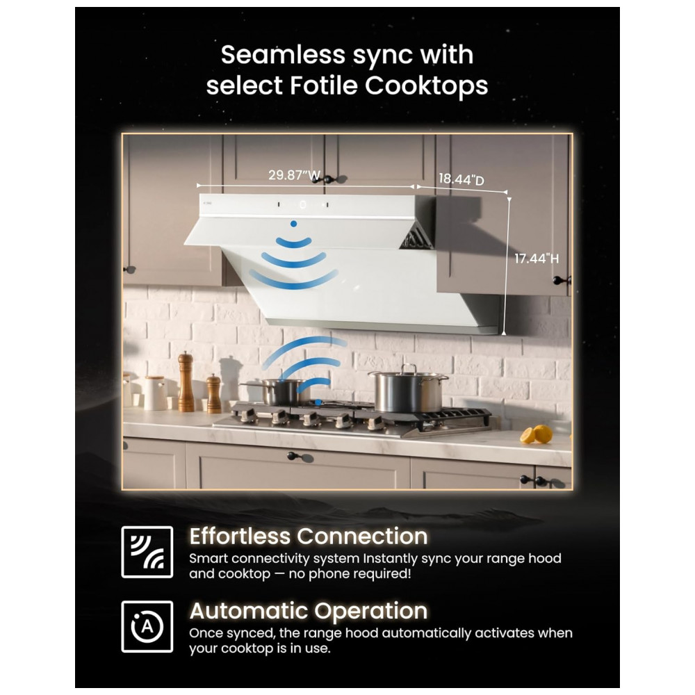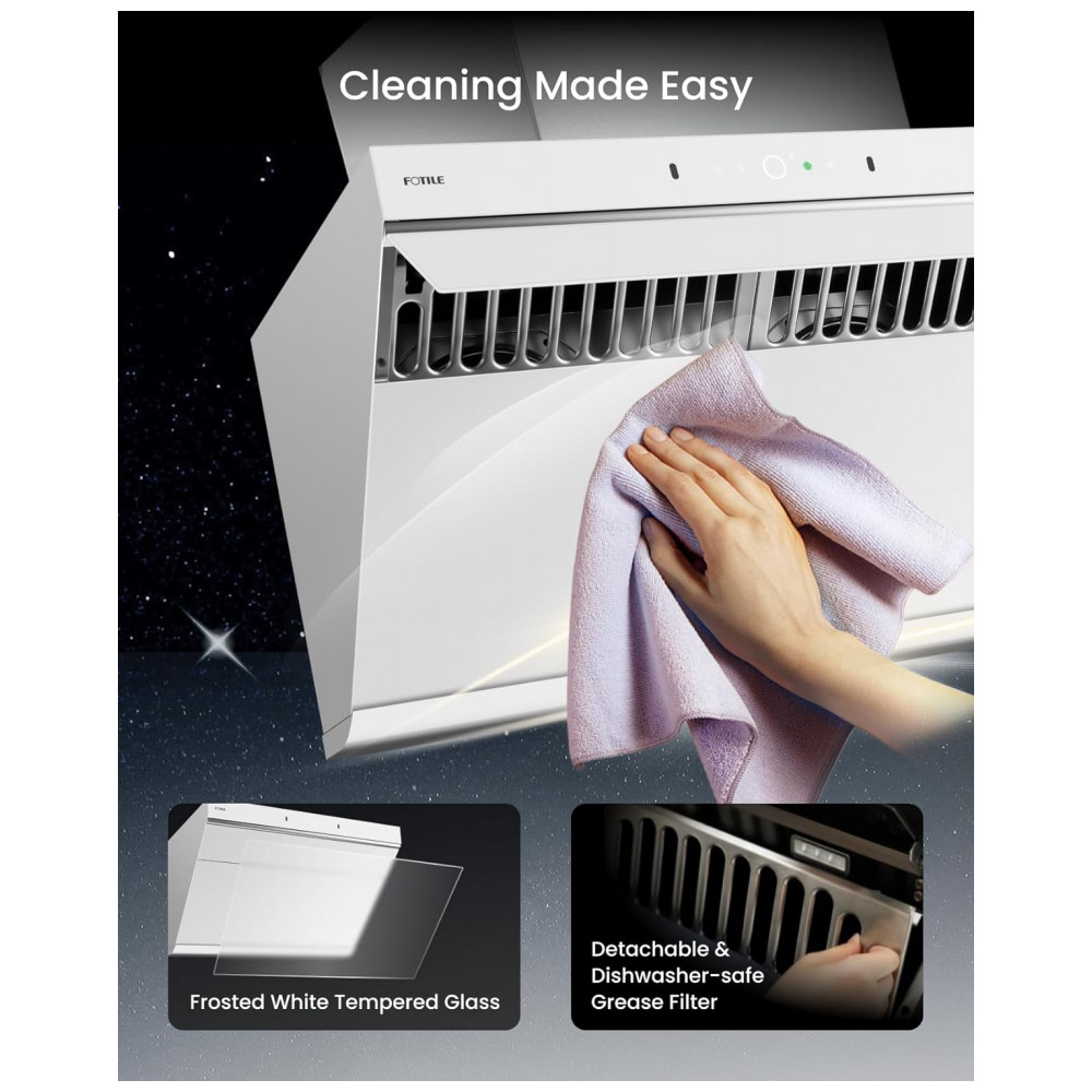 Coifa de embutir ou parede 76cm Fotile branca aço inox vidro temperado sucção inclinada 1100 CFM 4 velocidades 110V