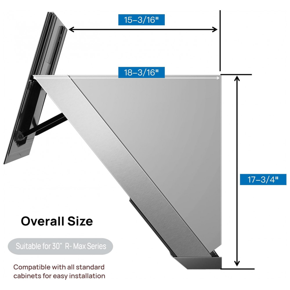 A coifa de embutir sob armário ou de parede Robam R-Max3 de 76 cm na cor branca é destinada à exaustão de alto desempenho em cozinhas residenciais, combinando corpo em aço inoxidável 304 com painel em vidro temperado. O conjunto foi desenvolvido para instalação sob armário ou diretamente na parede com duto de exaustão, atendendo fogões de 30 polegadas e cobrindo toda a área de cocção.