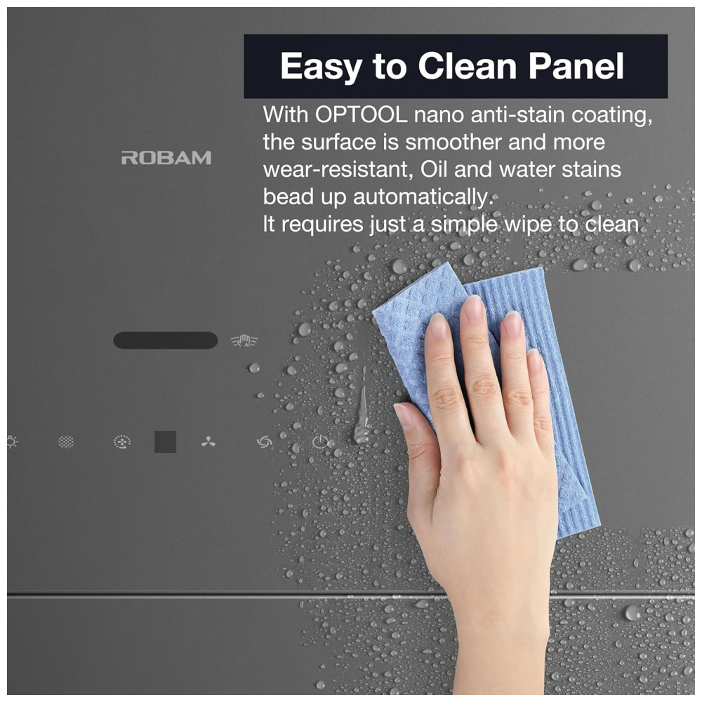 A coifa de embutir sob armário ou de parede Robam R-Max3 de 76 cm na cor cinza foi desenvolvida para exaustão de alto desempenho em cozinhas residenciais, combinando corpo em aço inoxidável 304 com painel em vidro temperado. O conjunto é adequado para instalação sob armário ou diretamente na parede, com duto de exaustão, cobrindo a área de cocção de fogões de 30 polegadas.
