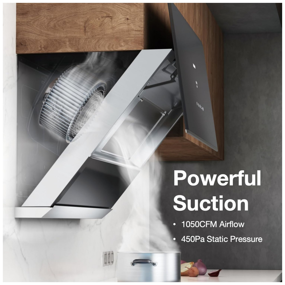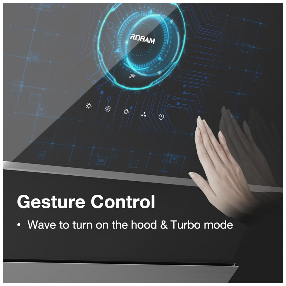 Coifa de embutir ou parede 76cm Robam preta aço inox vidro temperado motor brushless 1050 CFM 3 velocidades 110V