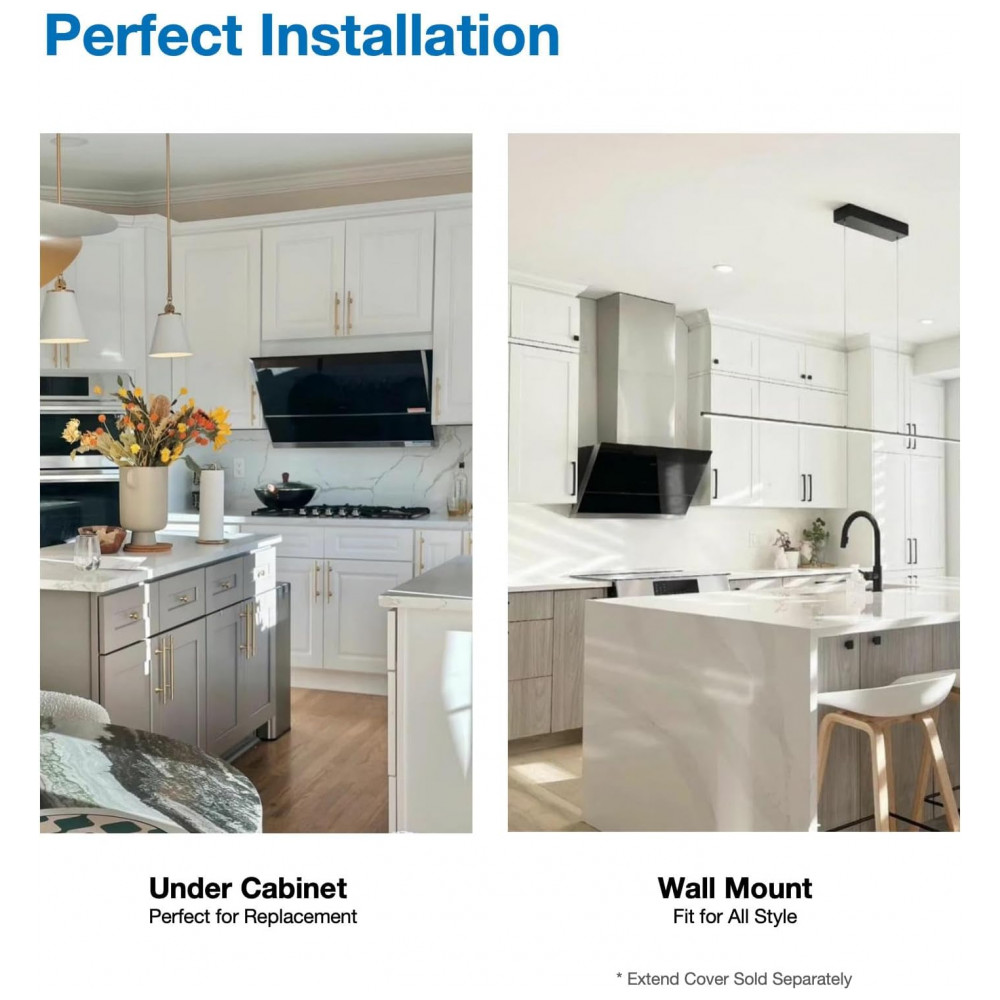 Recursos e tecnologias: Motor de alta performance, sucção lateral com veneziana basculante automática, controle por toque e gestos, iluminação LED, painel em vidro temperado, instalação sob armário ou parede, duto superior circular