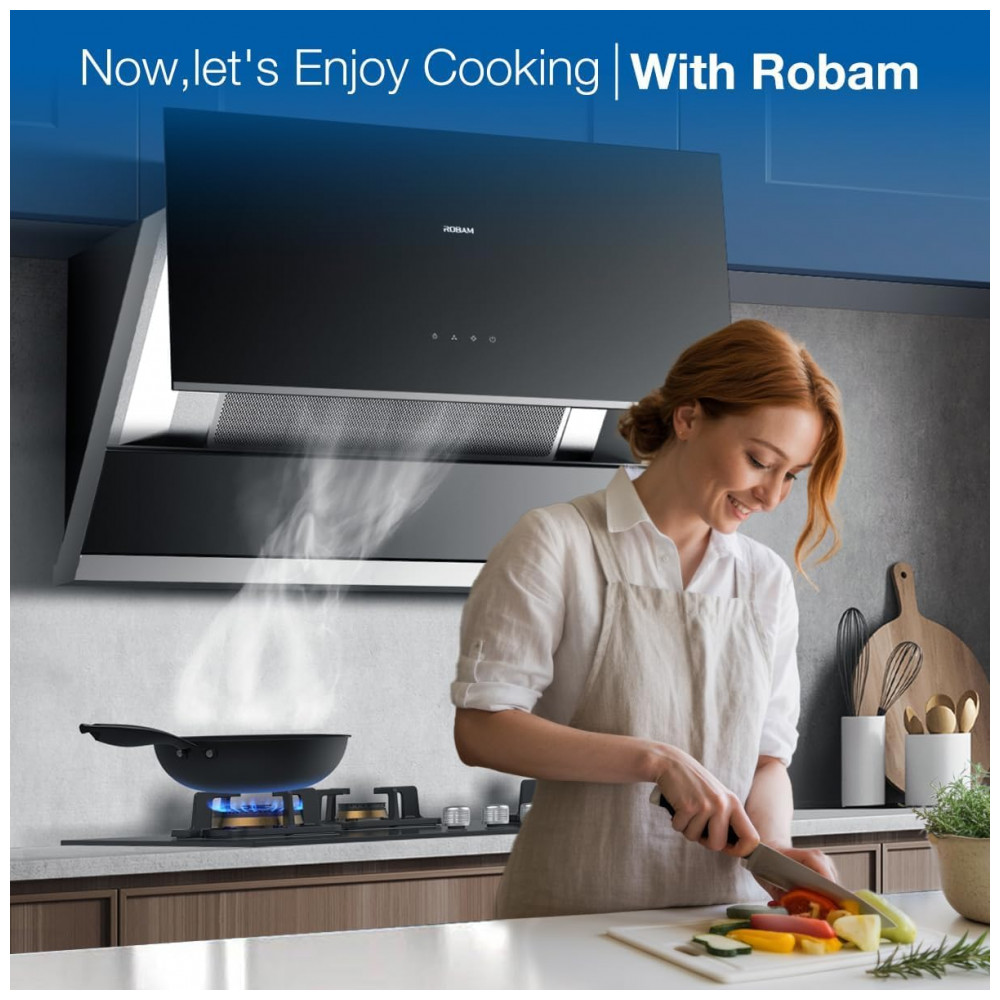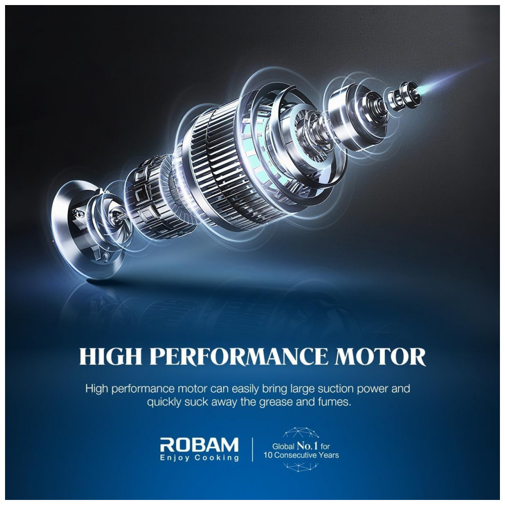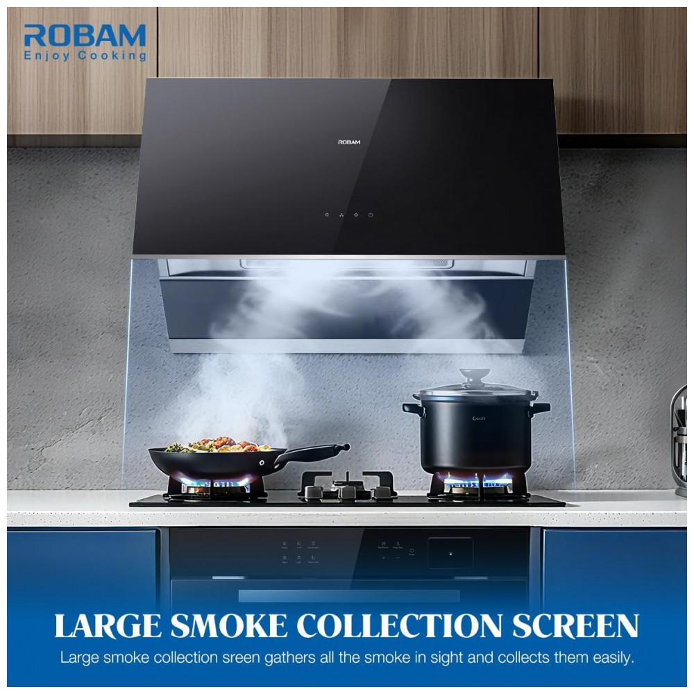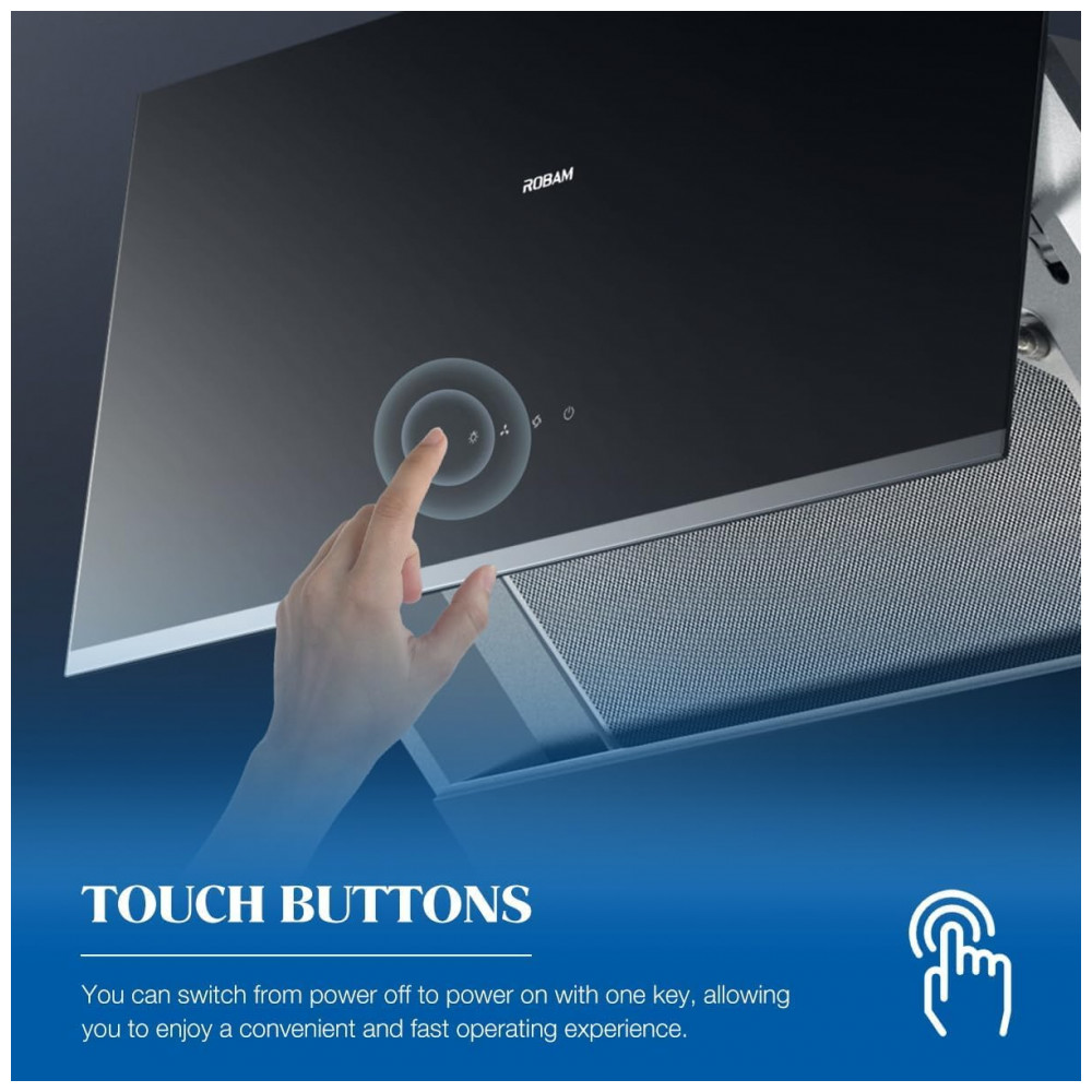 Coifa de embutir ou parede 76cm Robam preta aço inox vidro temperado motor brushless 850 CFM 3 velocidades 110V