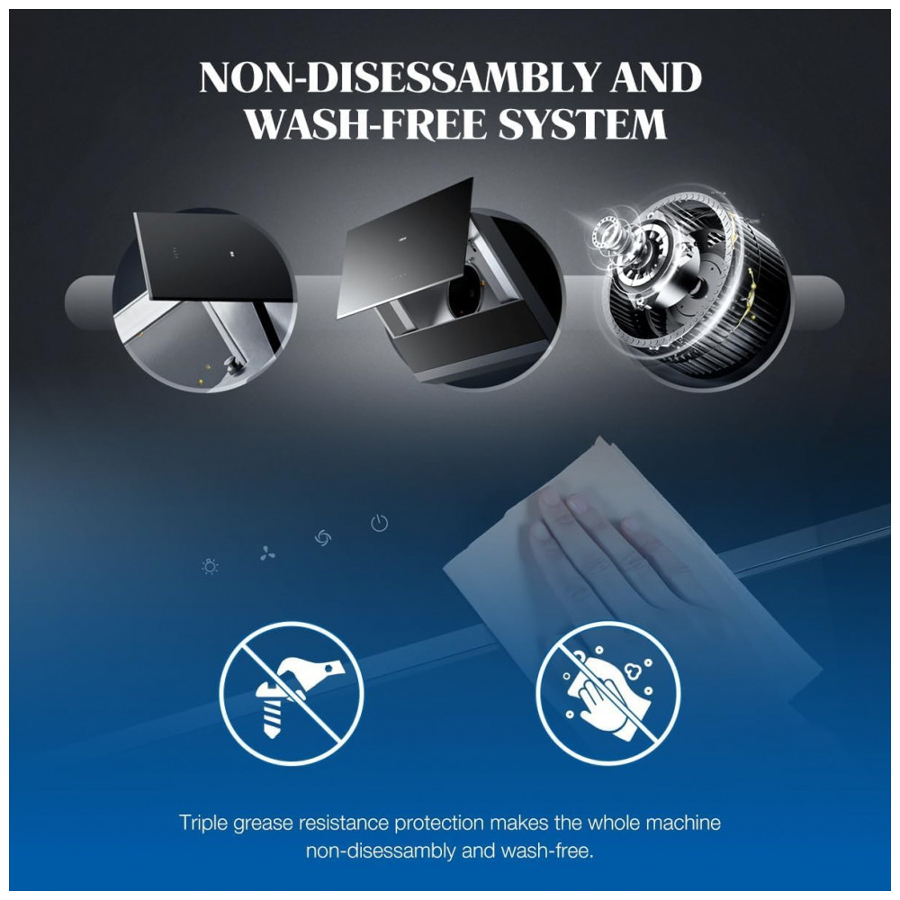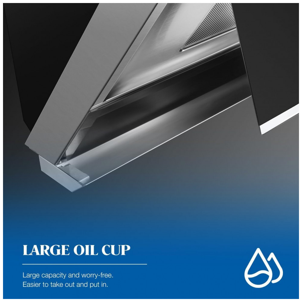 Recursos e tecnologias: Motor brushless, controle por toque, 3 velocidades de exaustão, área de captação otimizada, iluminação LED, copo coletor de óleo de grande capacidade