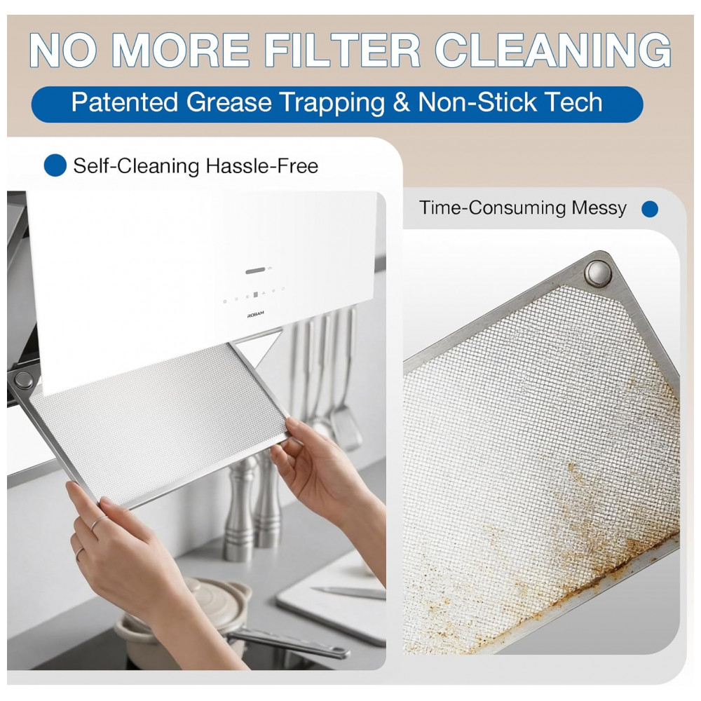 Coifa de embutir ou parede 91cm Robam branca aço inox vidro temperado motor brushless 1400 CFM 9 velocidades 110V