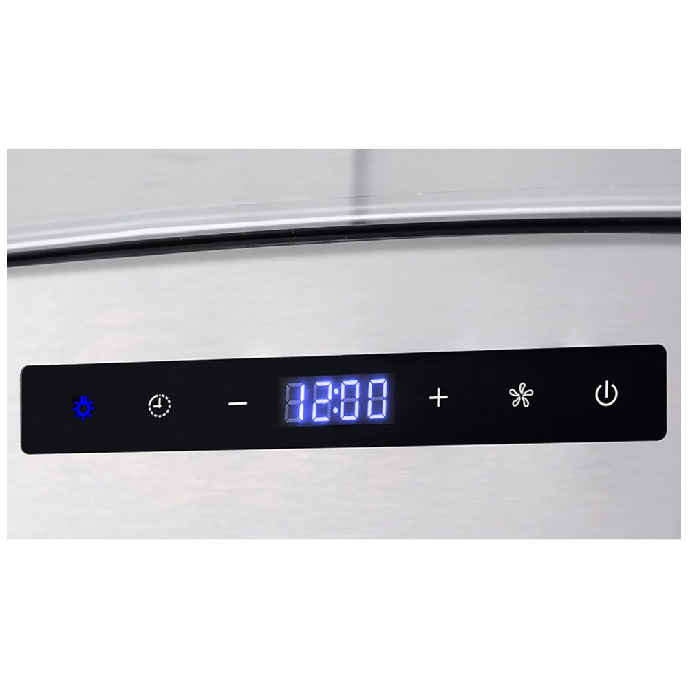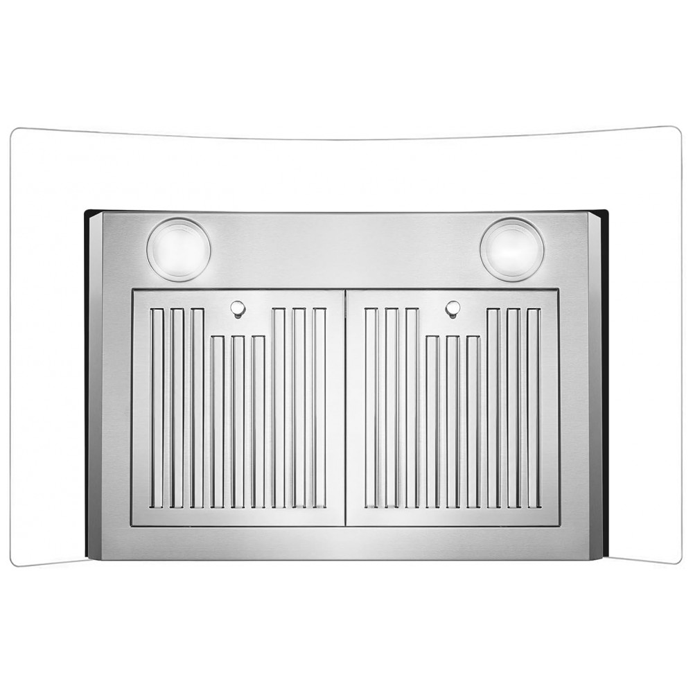 Material: Aço inoxidável escovado, vidro temperado curvo e filtros permanentes em aço inox