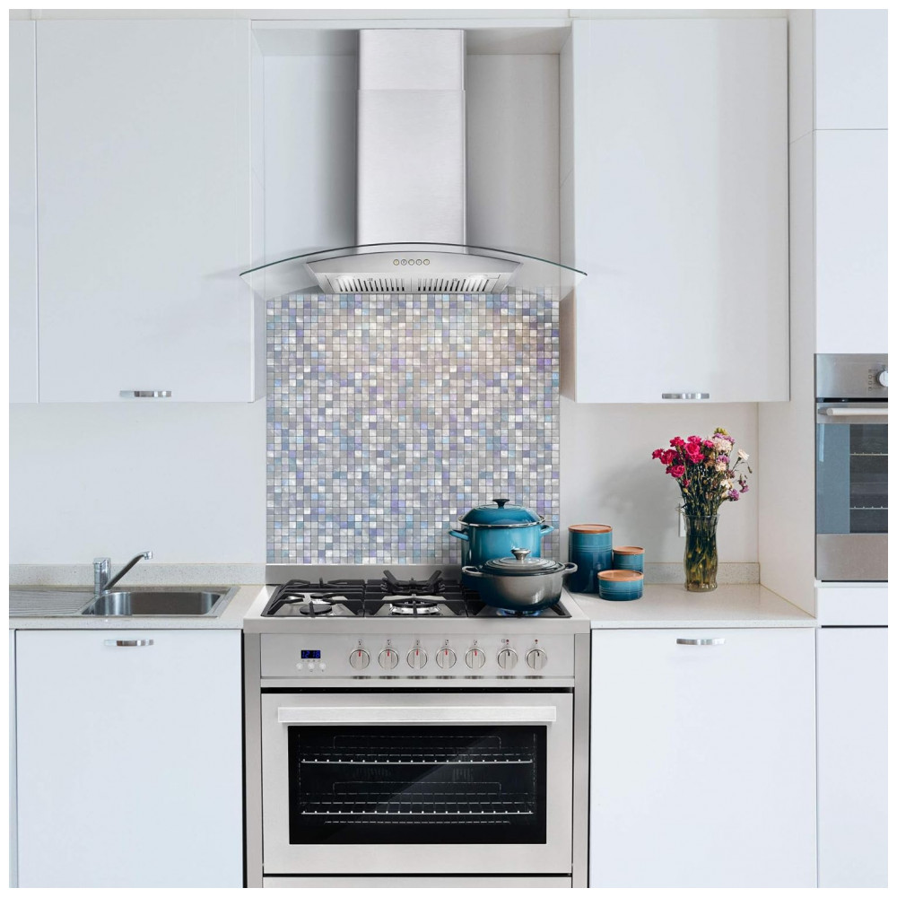 Material: Aço inoxidável 430 escovado e vidro temperado curvo com filtros permanentes em aço inox
