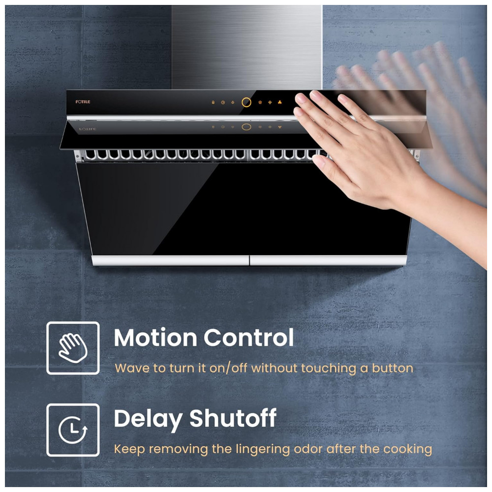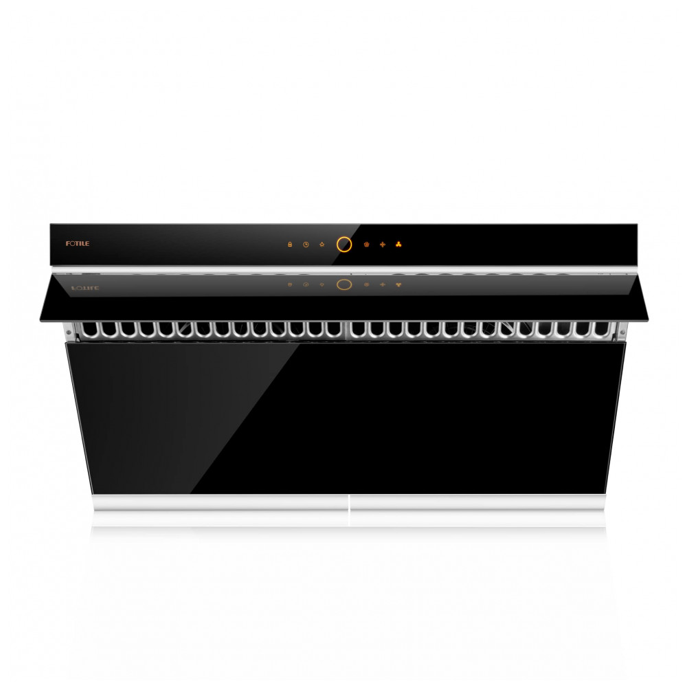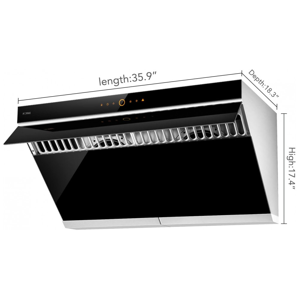 Coifa de parede ou embutir 91cm FOTILE preta vidro temperado inclinado dupla sucção motor duplo LED comando por toque 110V