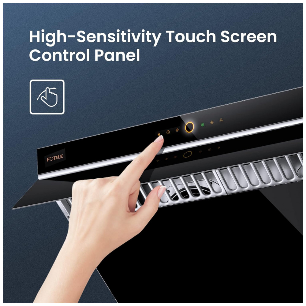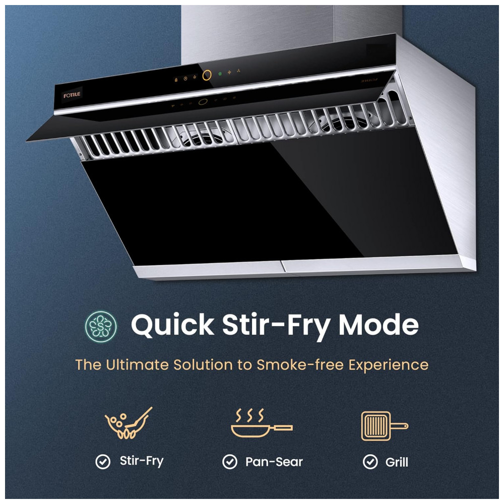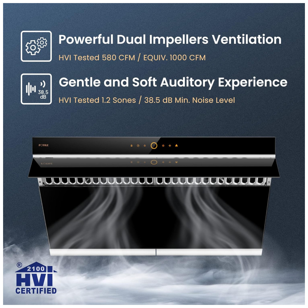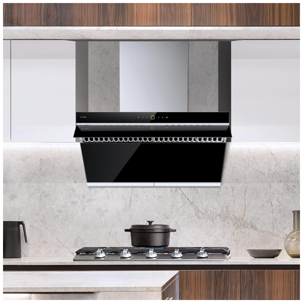 Coifa de parede ou embutir 91cm FOTILE preta vidro temperado inclinado dupla sucção motor duplo LED comando por toque 110V