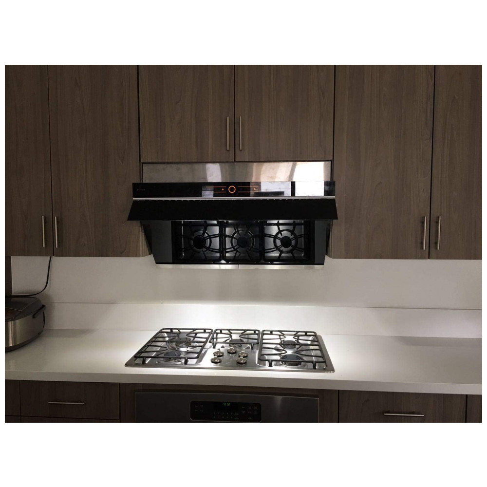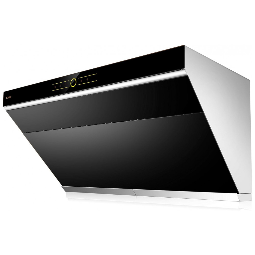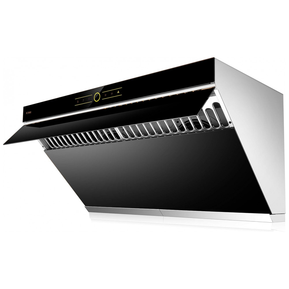Coifa de parede ou embutir 91cm FOTILE preta vidro temperado inclinado dupla sucção motor duplo LED comando por toque 110V