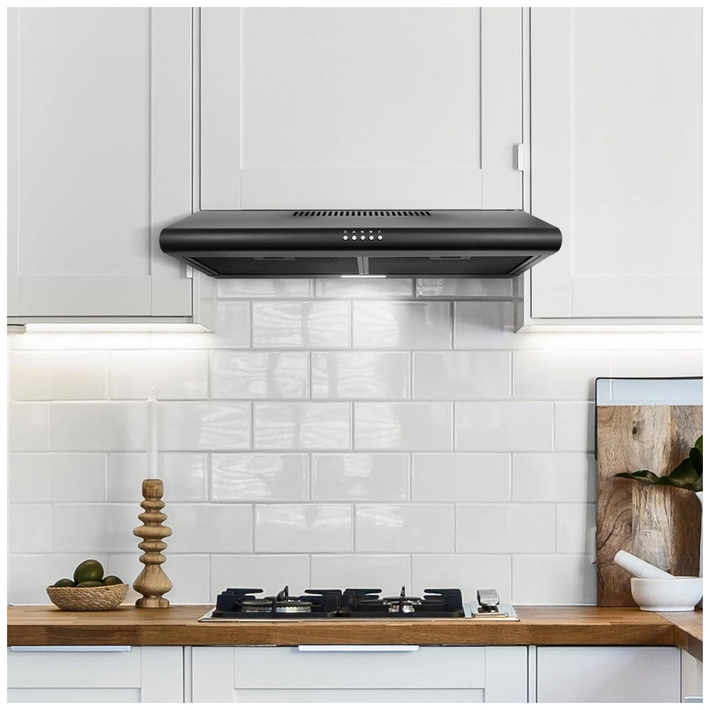 Coifa de embutir sob armário 76cm COSMO preta fosca perfil slim 3 velocidades filtros de alumínio reutilizáveis iluminação LED 110V