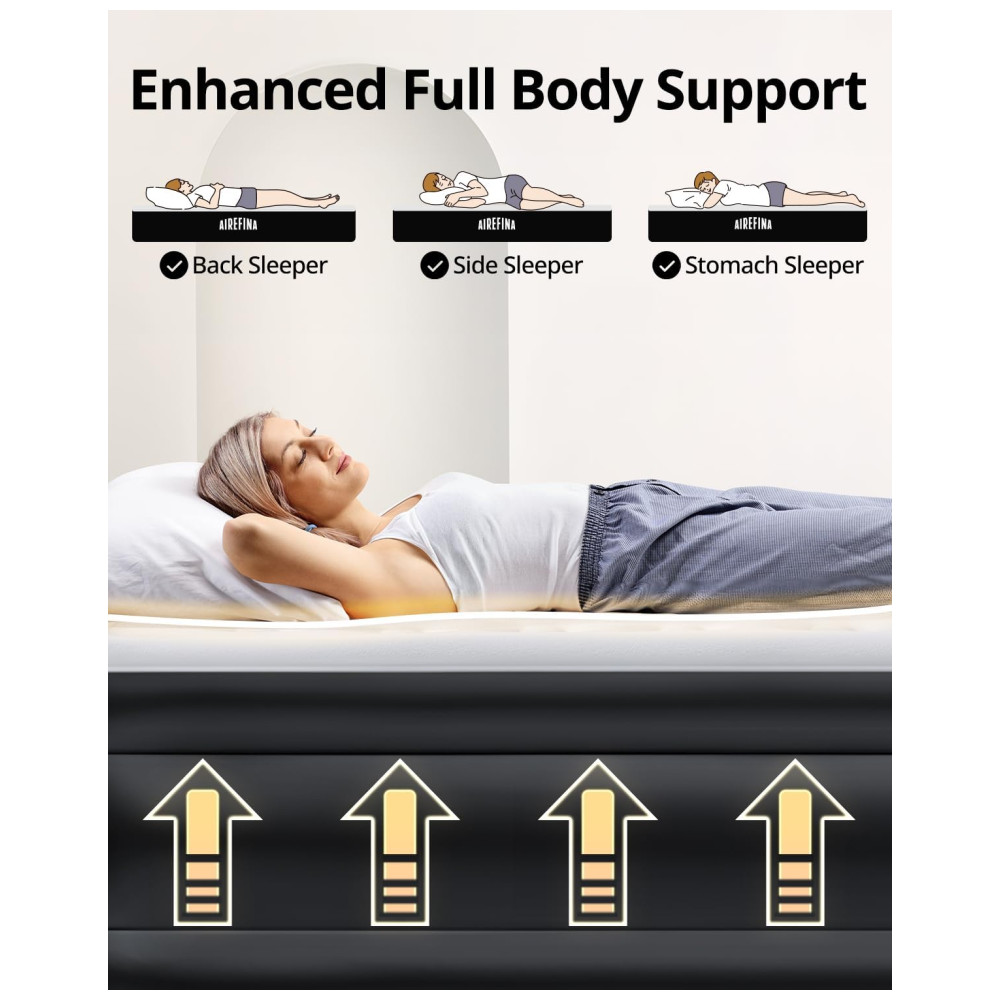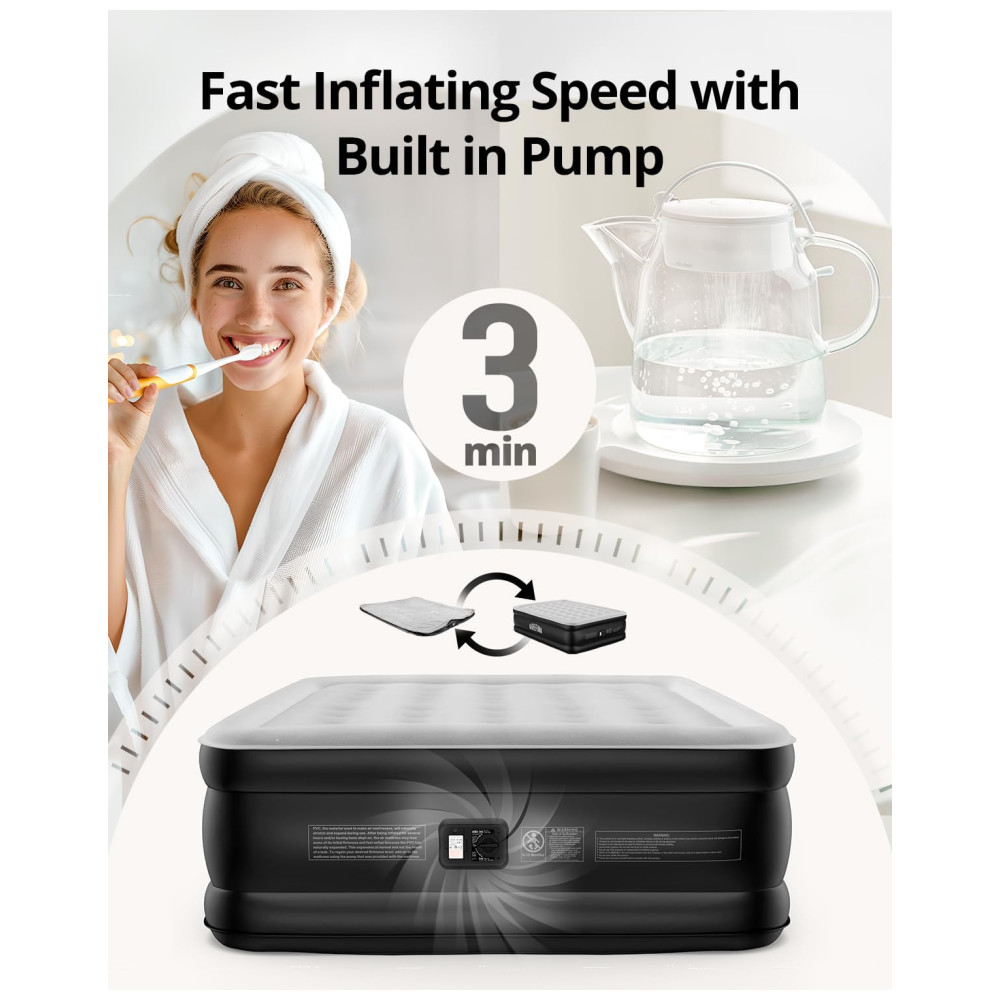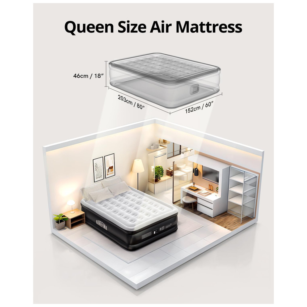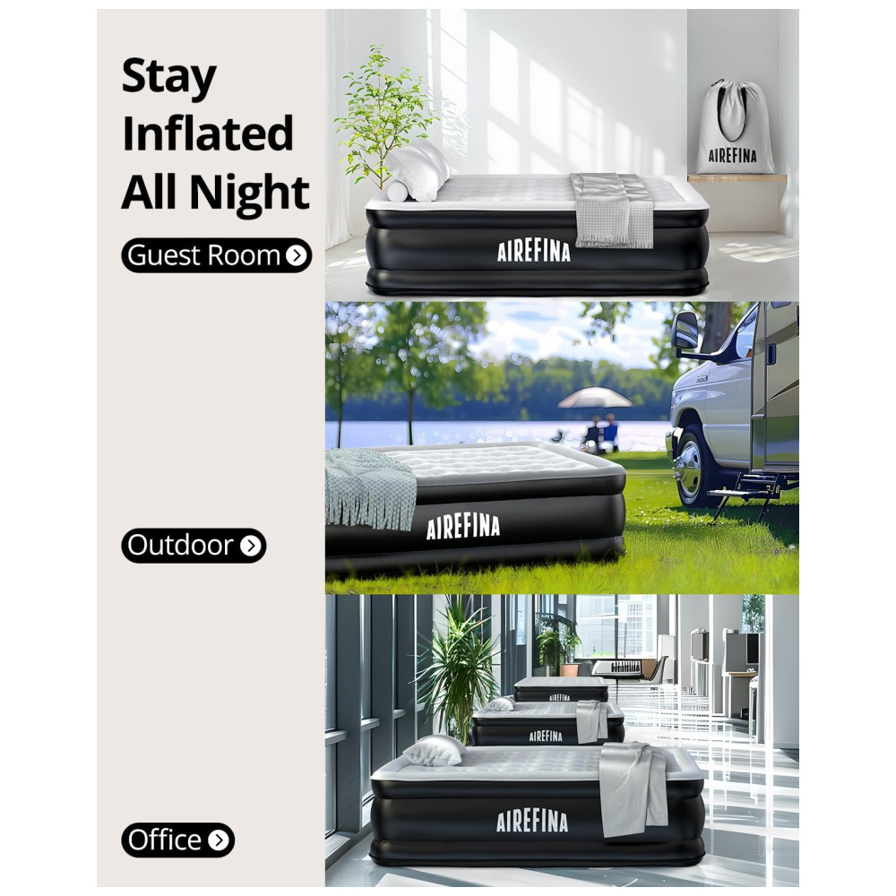 Colchão de Ar Airefina Queen com Bomba Integrada Confortável Colchão Inflável Queen com Bolsa de Transporte para Casa ou Visitas Inflação e Deflação em 3 Minutos