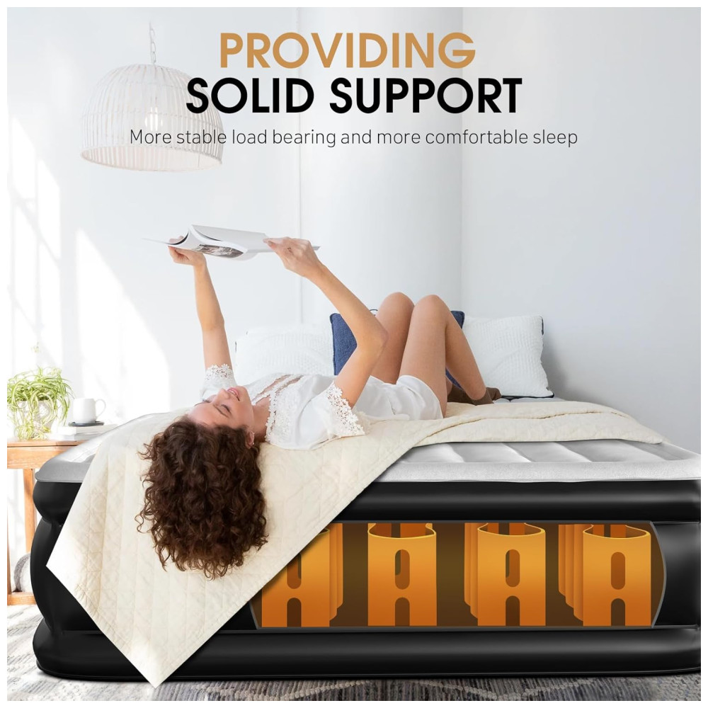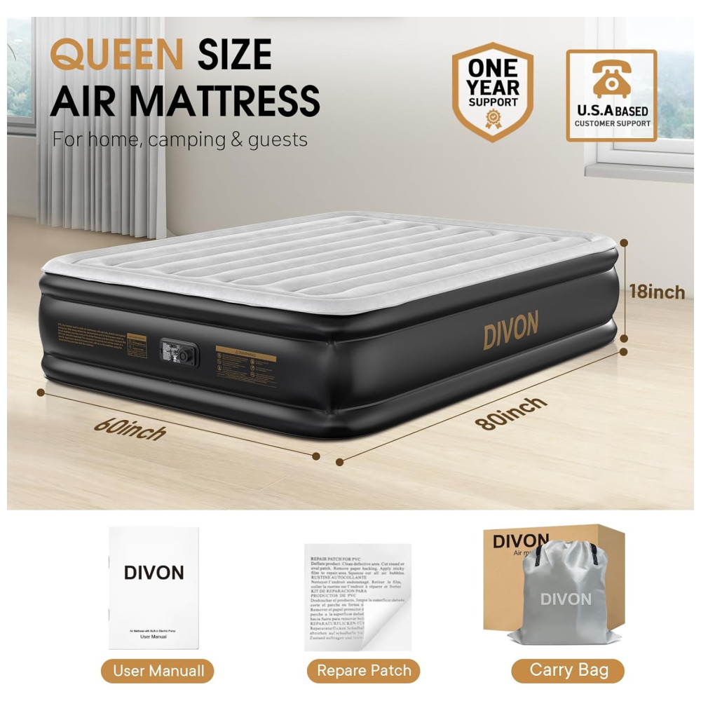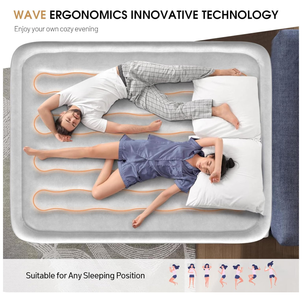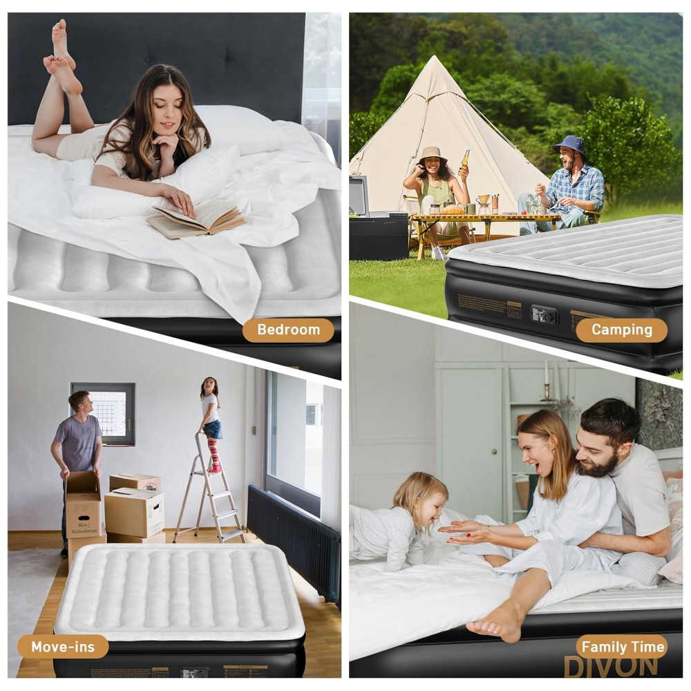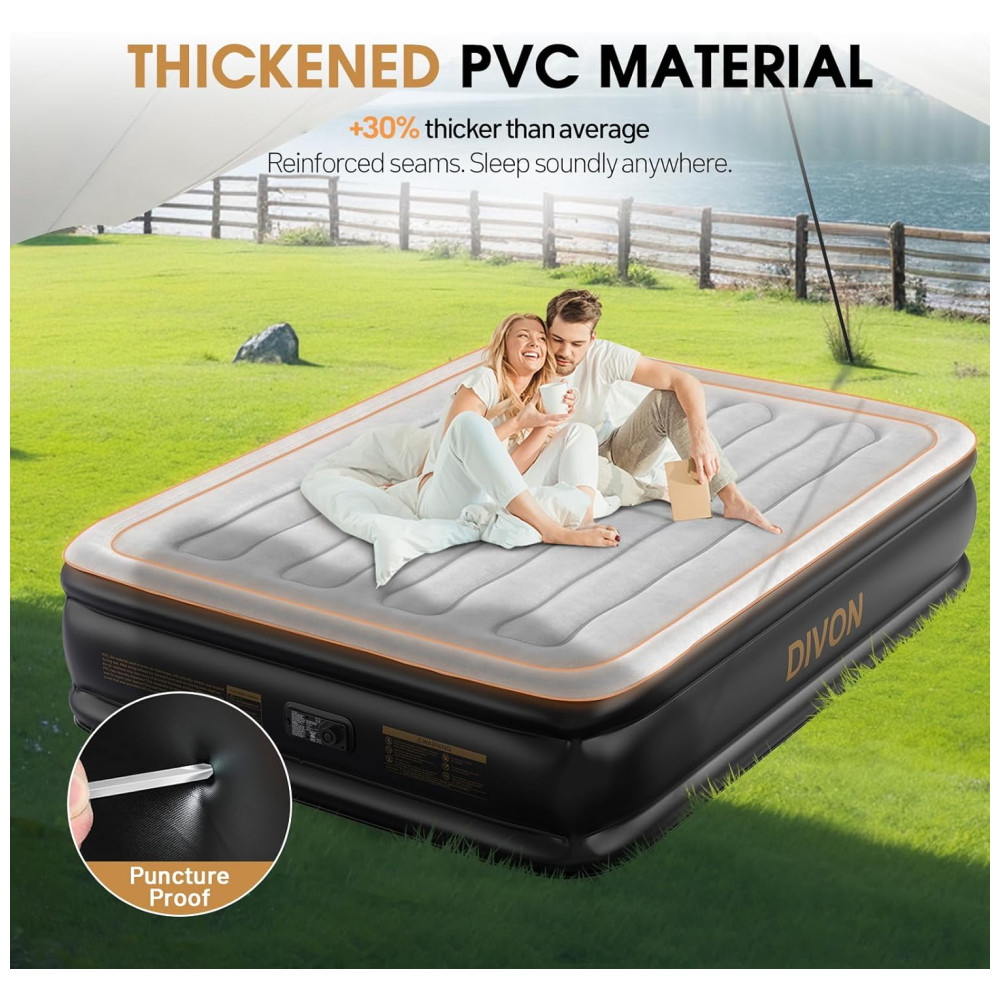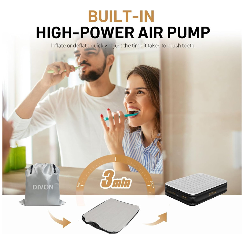Colchão de Ar DIVON Queen com Bomba Interna Colchão Inflável com Padrão de Ondas em 76 cm 46 cm de Altura Colchão de Ar de Luxo para Casa e Camping.