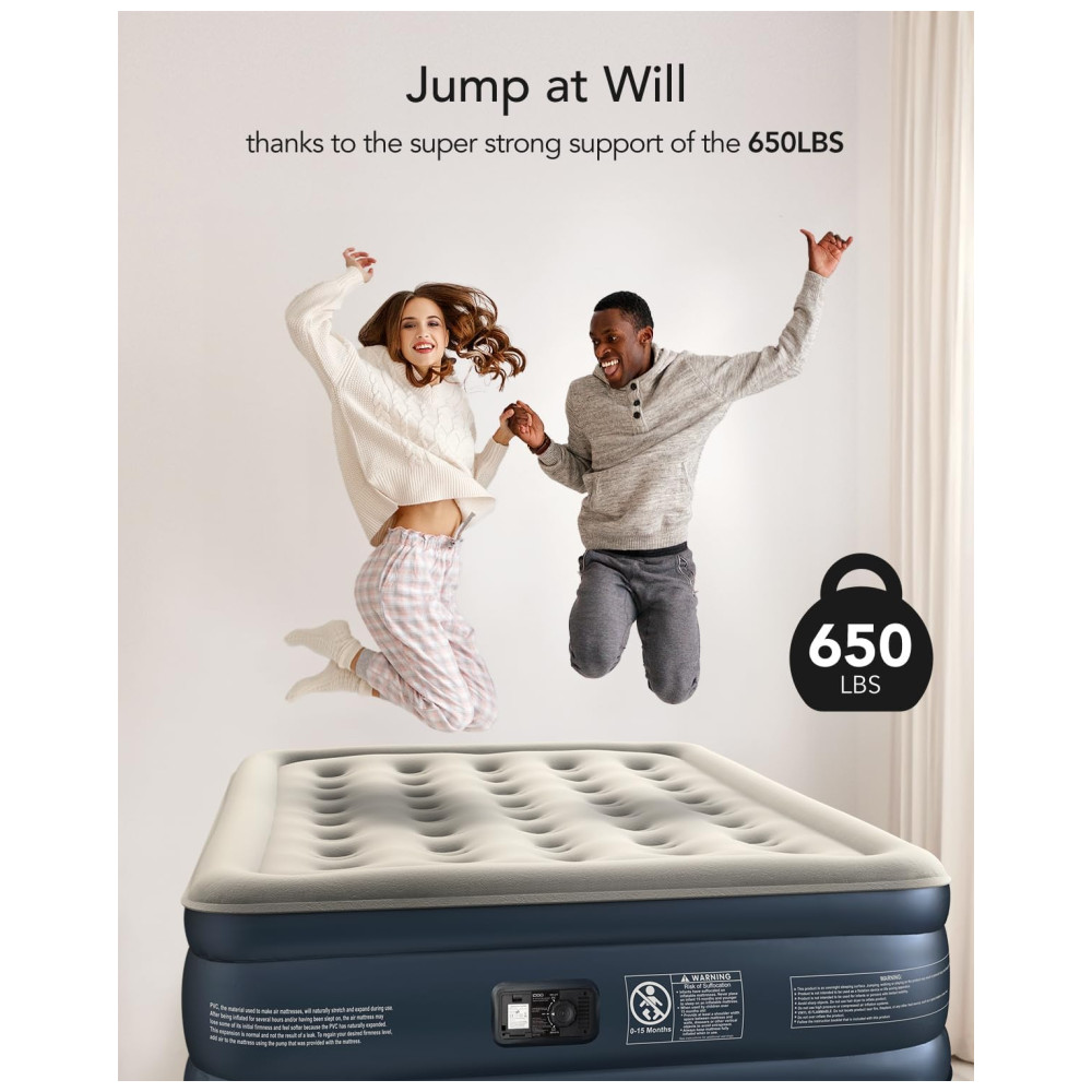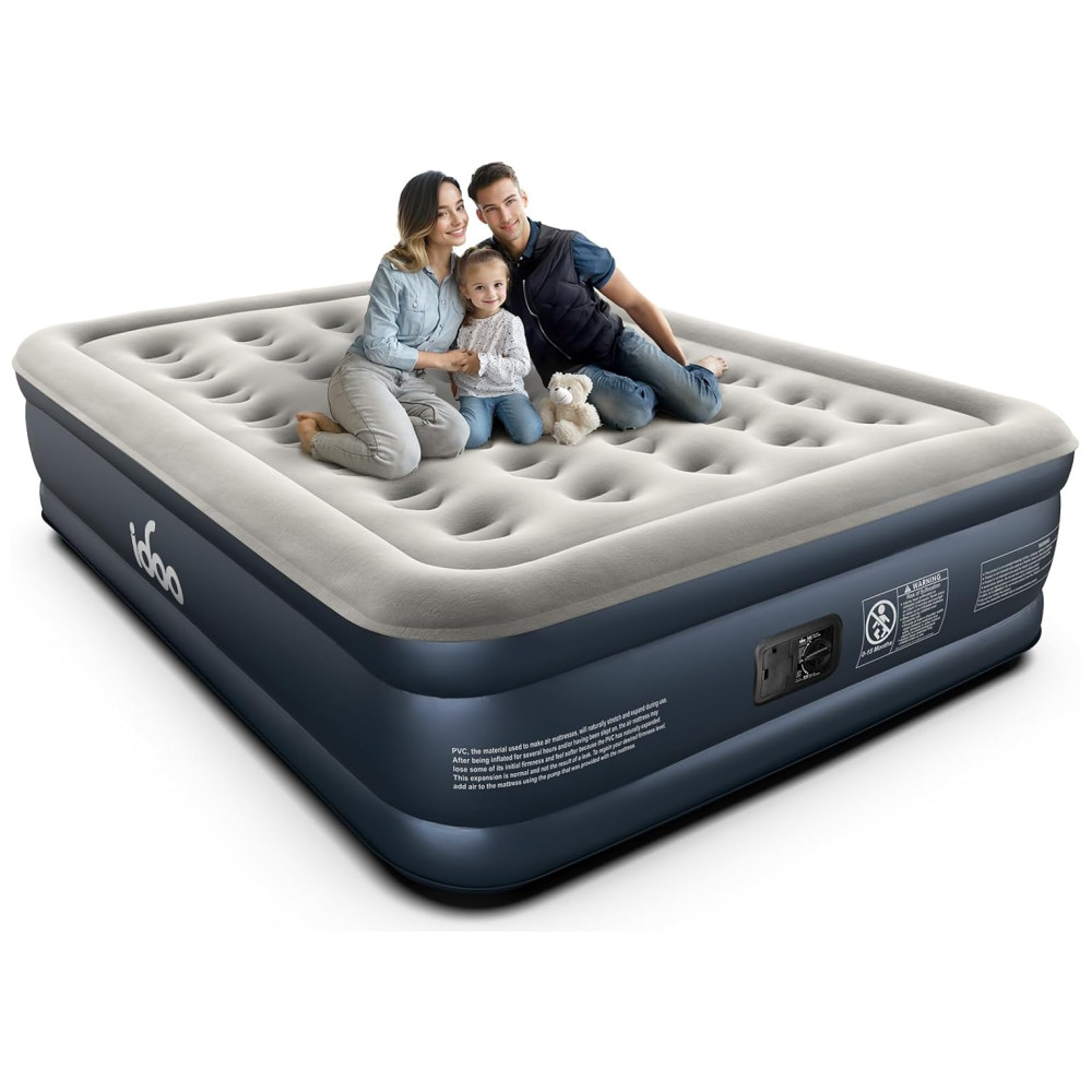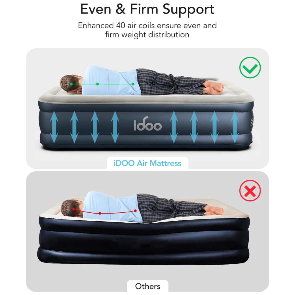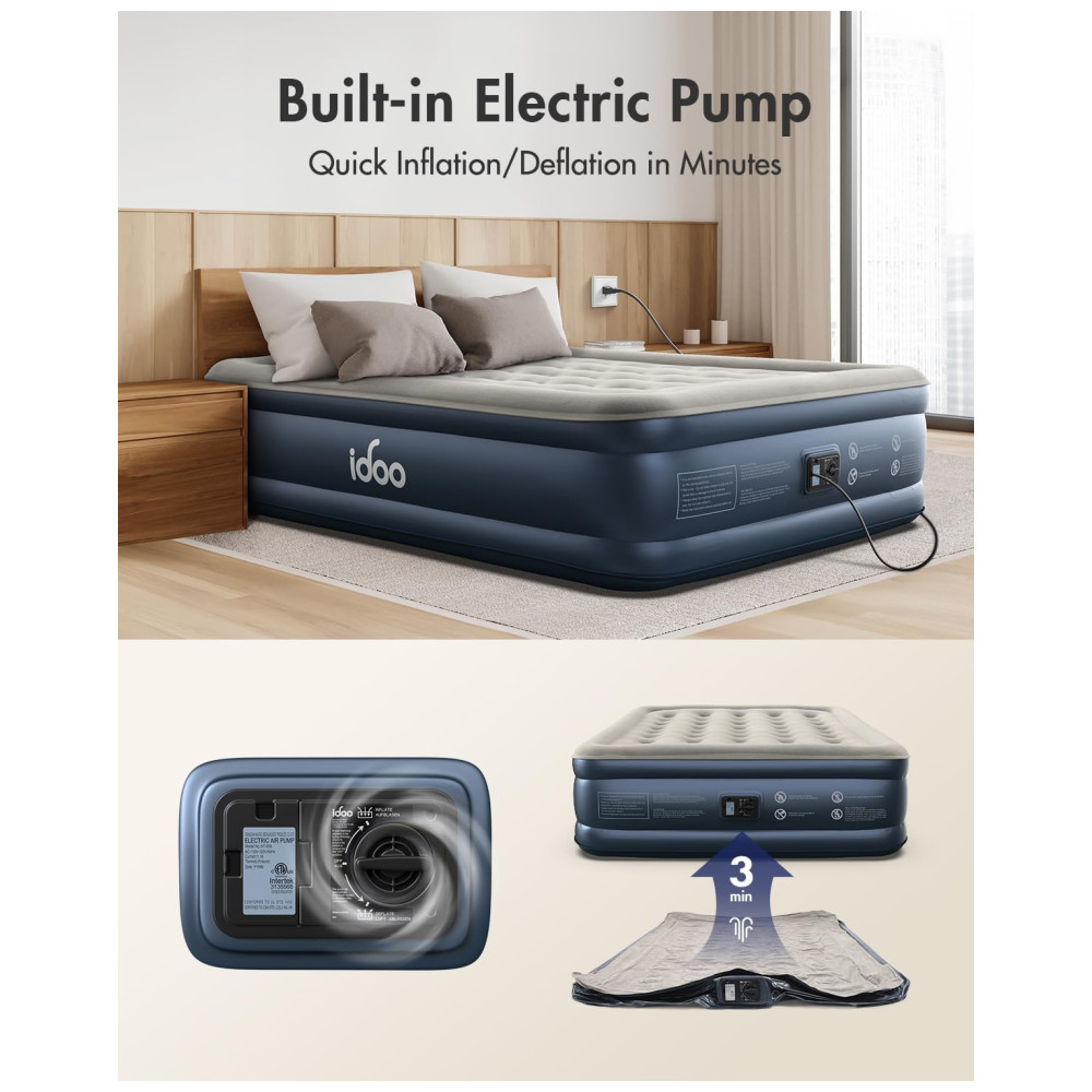 Colchão de Ar iDOO Queen com Bomba Integrada 45 cm de Altura para Conforto Superior Estrutura de Quatro Câmaras Atualizada