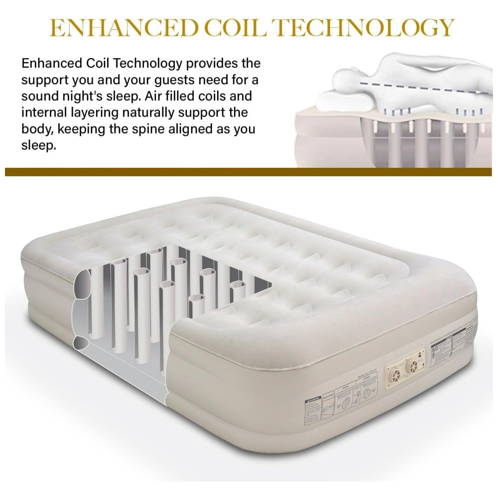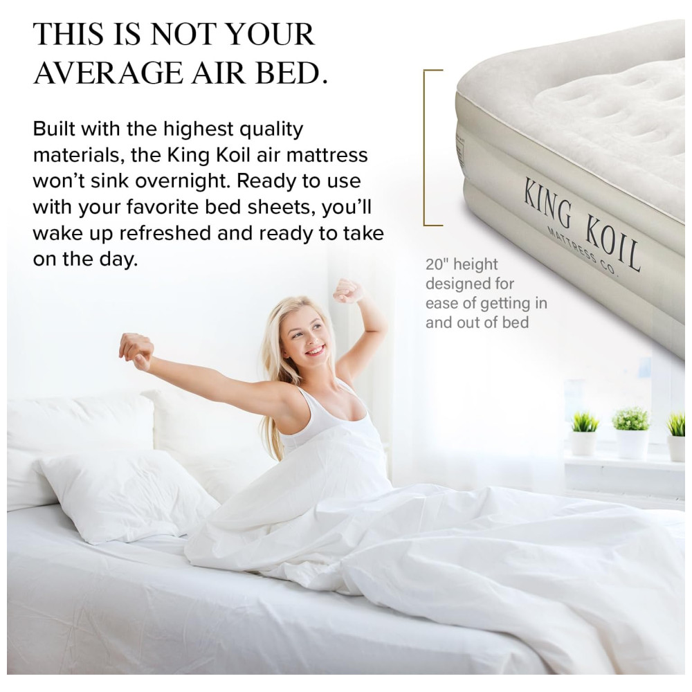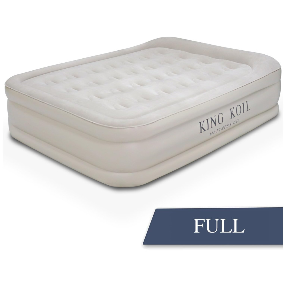 Colchão de Ar King Koil Luxury 50 centímetros Tamanho Completo Bege com Bomba Integrada para Casa Acampamento e Convidados – Colchão Inflável de Luxo Duplo