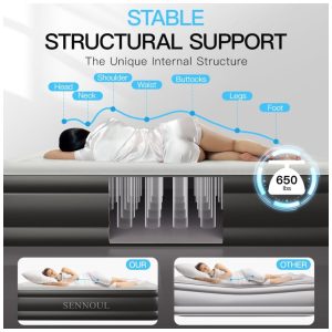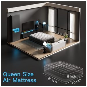 Colchão de Ar Queen com Bomba Interna Aprimorada – Infla e esvazia em 2 Min Suporte 295kg Super Confortável e Resistente a Perfurações