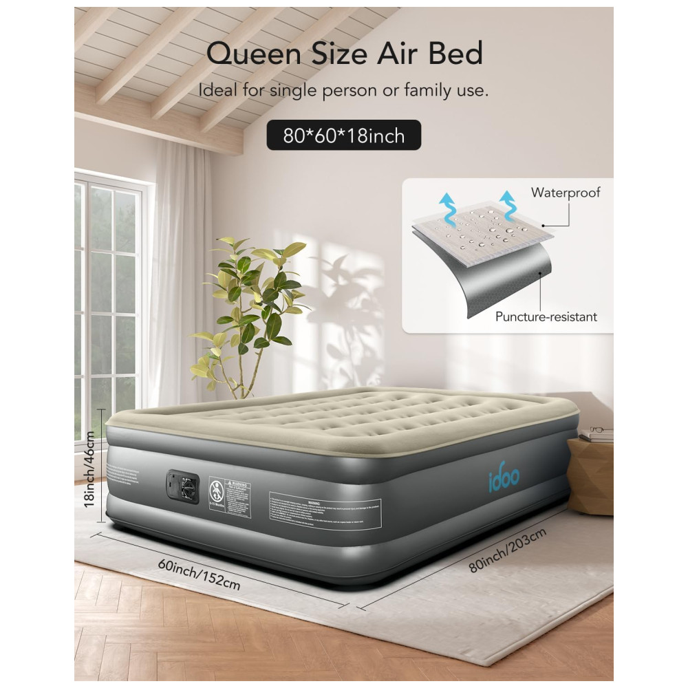 Colchão de Ar Queen iDOO com Bomba Integrada 45 cm de Altura para Conforto Máximo – Ideal para Camping e Visitas