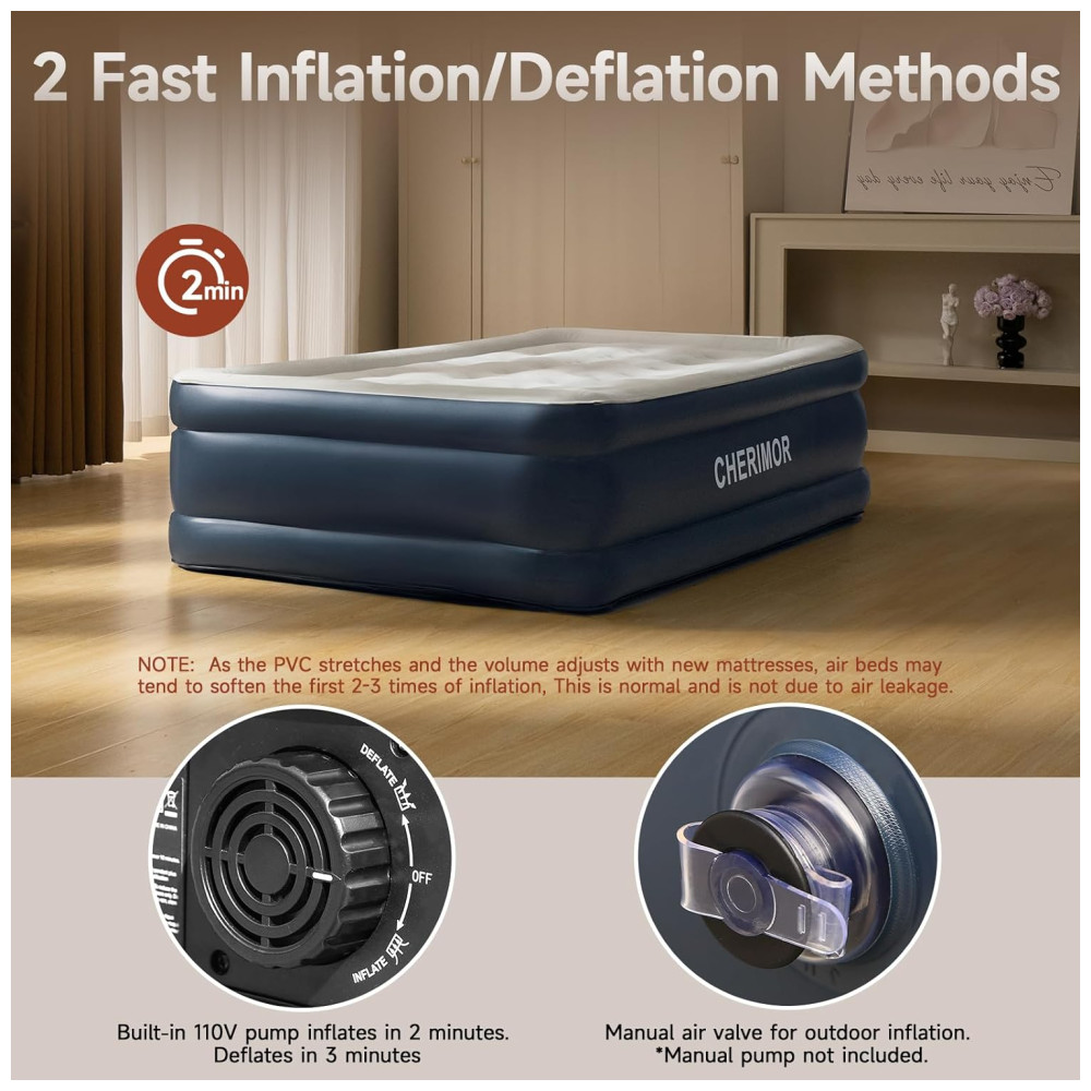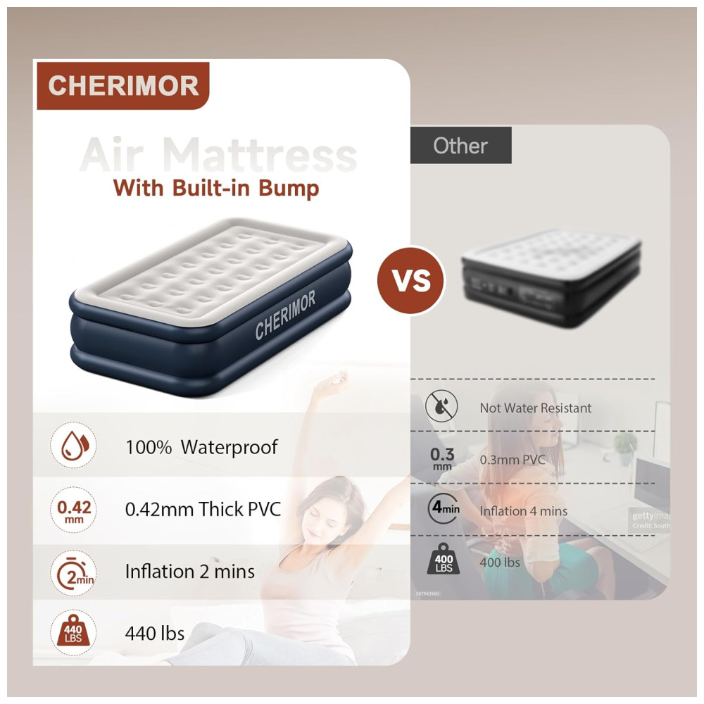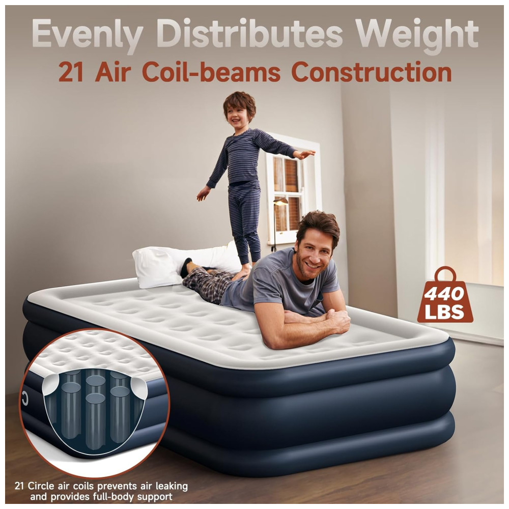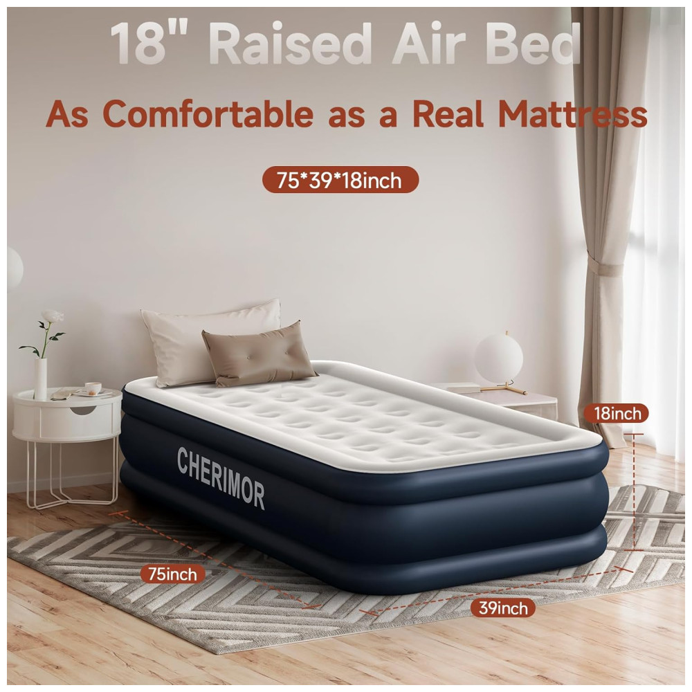 Desfrute de uma solução de sono confortável com o Colchão de Ar de Solteiro de Luxo da CHERIMOR. Possui uma camada superior de PVC macio e aveludado, gentil com a pele, garantindo uma noite de sono tranquila. Sua construção com 21 bobinas de ar distribui o peso de forma uniforme, suportando até 200kg e proporcionando um excelente suporte corporal. A parte inferior do colchão é reforçada com material antiderrapante de alta qualidade para garantir estabilidade. Com espessura de 0,42mm, é 40% mais resistente que produtos similares, sendo durável e à prova d’água. A configuração é rápida e simples com a bomba embutida de alto volume, inflando o colchão em apenas 2 minutos. Acompanha uma bolsa para transporte, facilitando sua portabilidade em diferentes situações. Seja em casa, acampamentos ou para hóspedes, o Colchão de Ar da CHERIMOR garante conforto e qualidade em qualquer lugar.